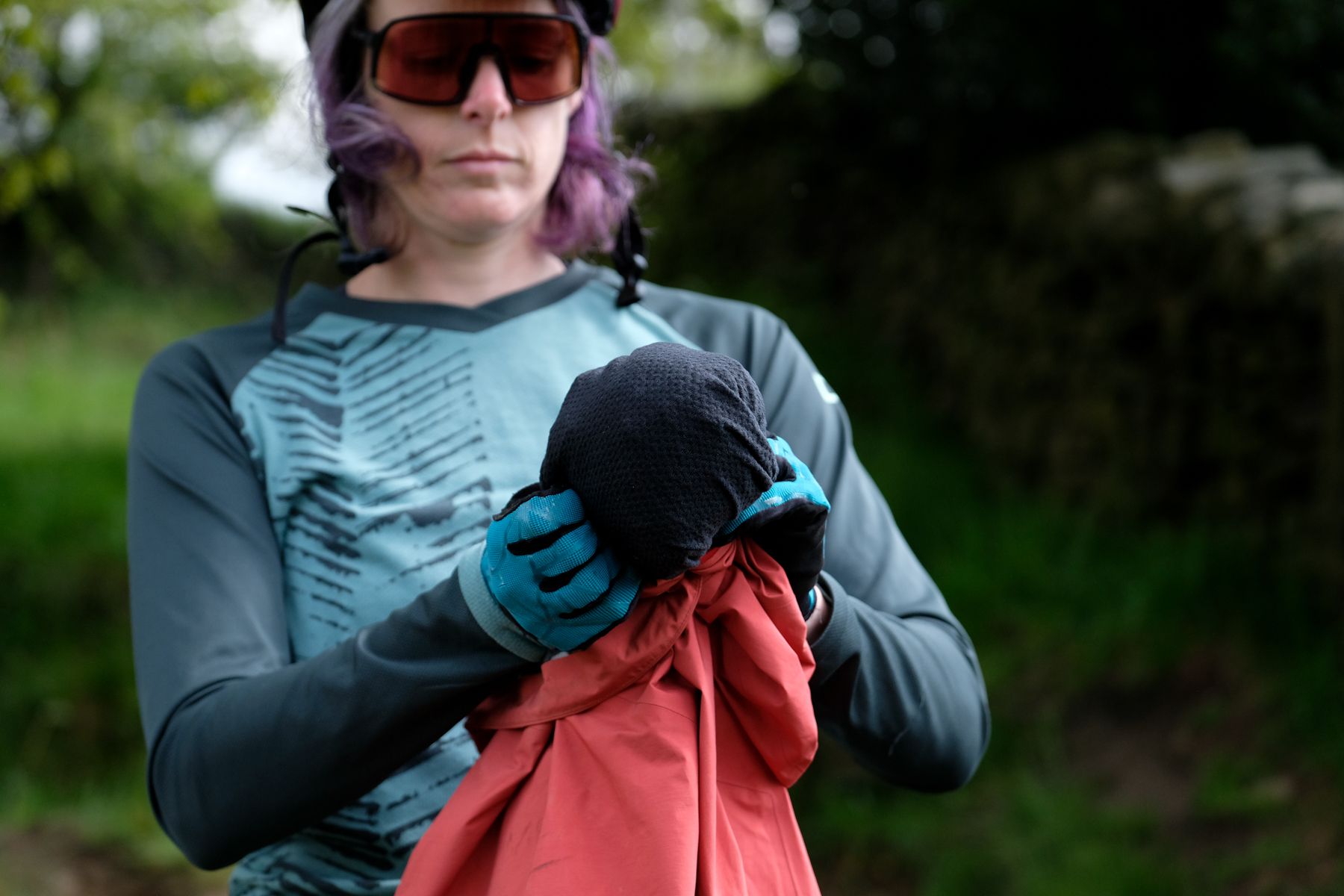 The hood has elasticated draw-cords so you can pull it in snugly. It’s sat happily under a helmet, but it is designed to go over one. To get it to fit over your helmet, you first need to partially unzip your jacket. You then put the hood up, zip your jacket back up, and the hood stays in place. May this year has provided plenty of torrential rain opportunities for such testing, and while it’s sold as ‘a back up shell’ it has largely been tested as an essential piece of kit for setting foot out of the door.