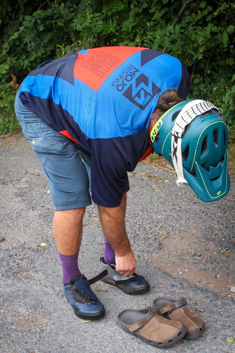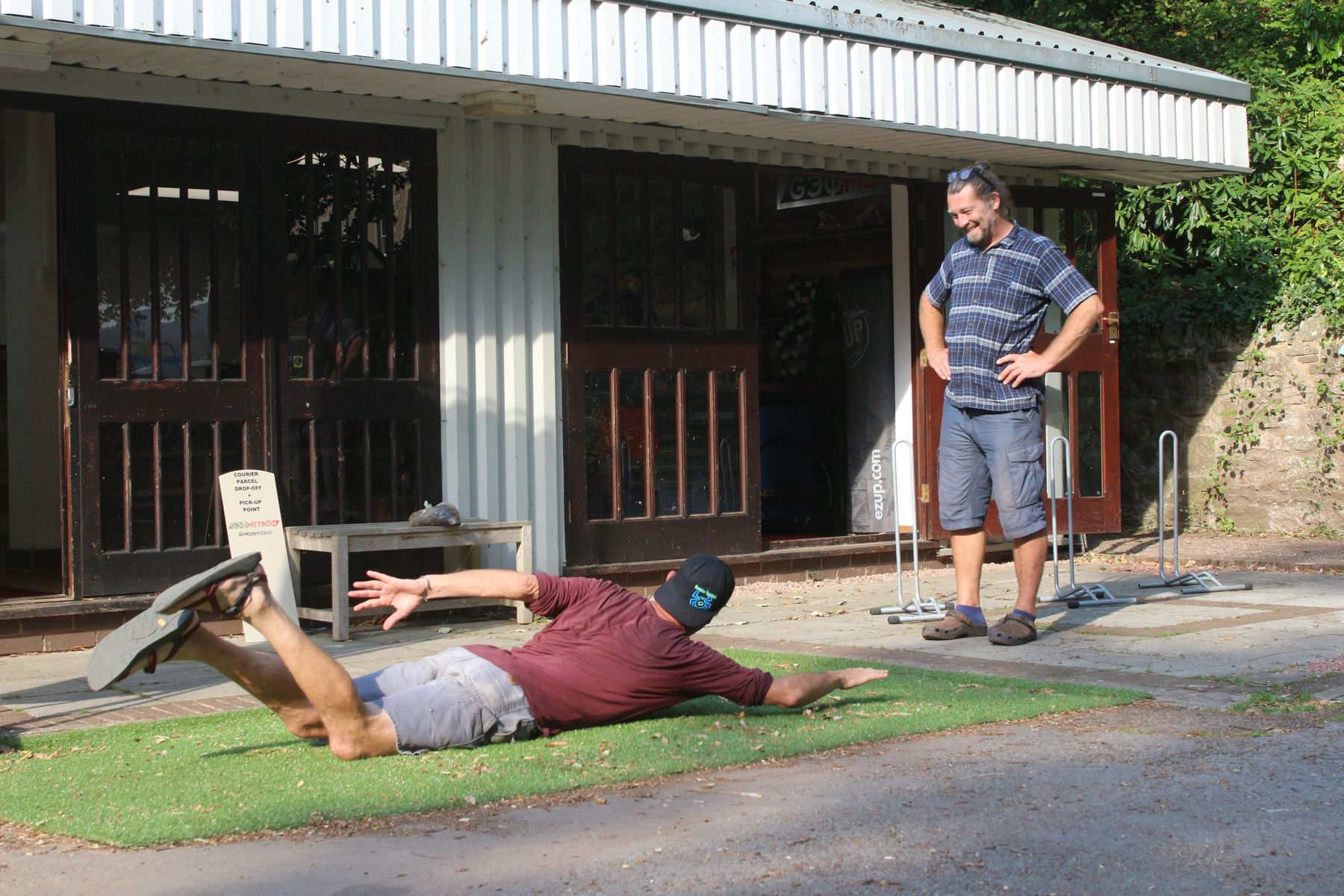 On the hottest day of 2020 I miss the turning for Chris Porter’s Mojo Rising base, mistaking it for the entrance to a stately home. Only, that’s no mistake – his small but expanding industrial unit is in the grounds of a stately home. It’s all rather…nice. There’s a coffee vendor that does proper coffee, and dairy-free options, and on the day we’re there, giant iced lattes. Just round the corner they’re building Atherton bikes, and a few units up some men are sweating in a sparse gym. There’s someone making craftsy wooden signs, and another place that looks like actual proper offices where people poke at computers. Large leafy trees provide patches of shade and green fields roll off down towards the River Wye.