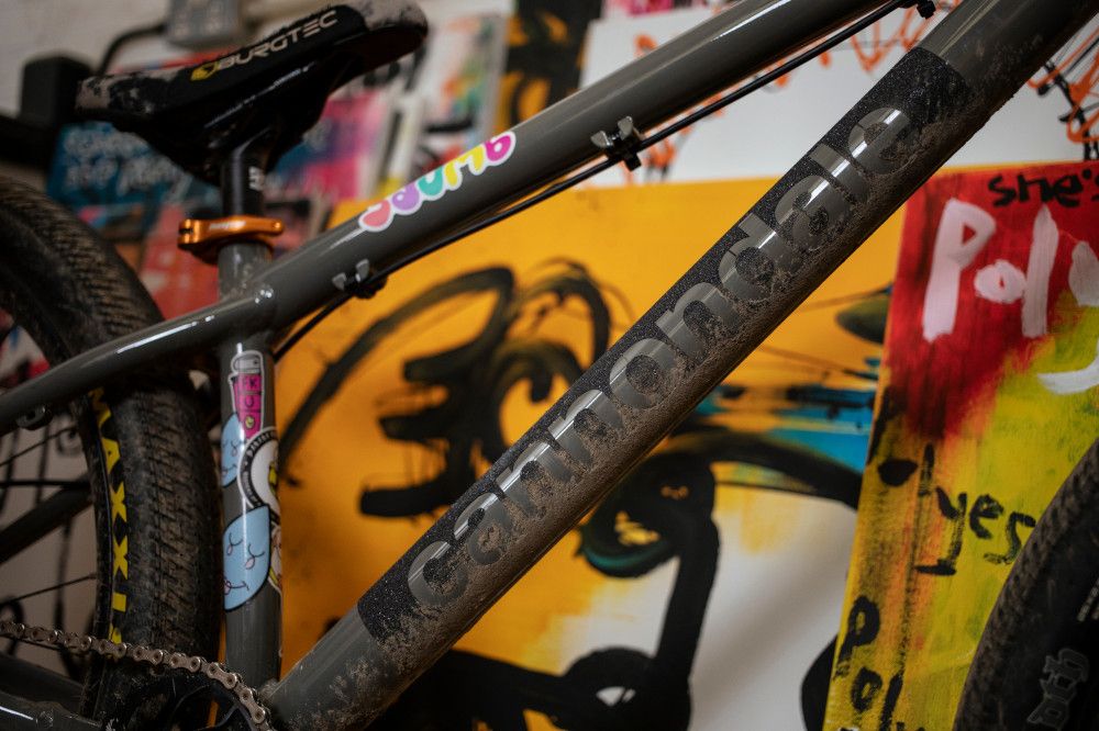 The Cannondale Dave comes with a marketing package that seeks to position the Dave as a bike for anywhere, for anyone. It’s got street smarts and a low budget launch movie shot anywhere but the glamorous trails of southern Europe. This seems to fit with some of Josh Bryceland’s aims for his Cannondale Sessions team (crew?) and the bike bears the hallmarks of those riders: Sam aka ‘Dave’ Hockenhull gives it the name and there are graphics from Max Nerurkar.