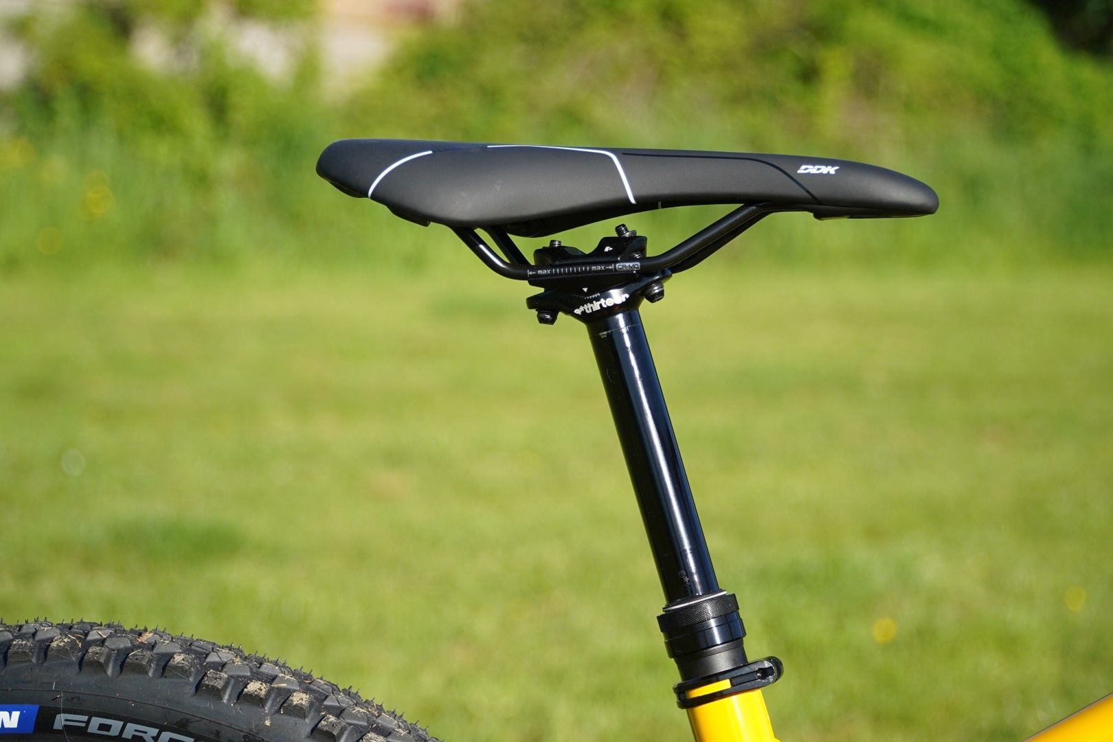 Also, James Vincent if you are reading this here is a message for you. Yes, those brown Fox 36 are the forks that I’ve said you can try on the Deviate but as we’re still waiting on your shock I’ve slid them on this yellow hardtail for a spin. Do not worry, you will be getting them.