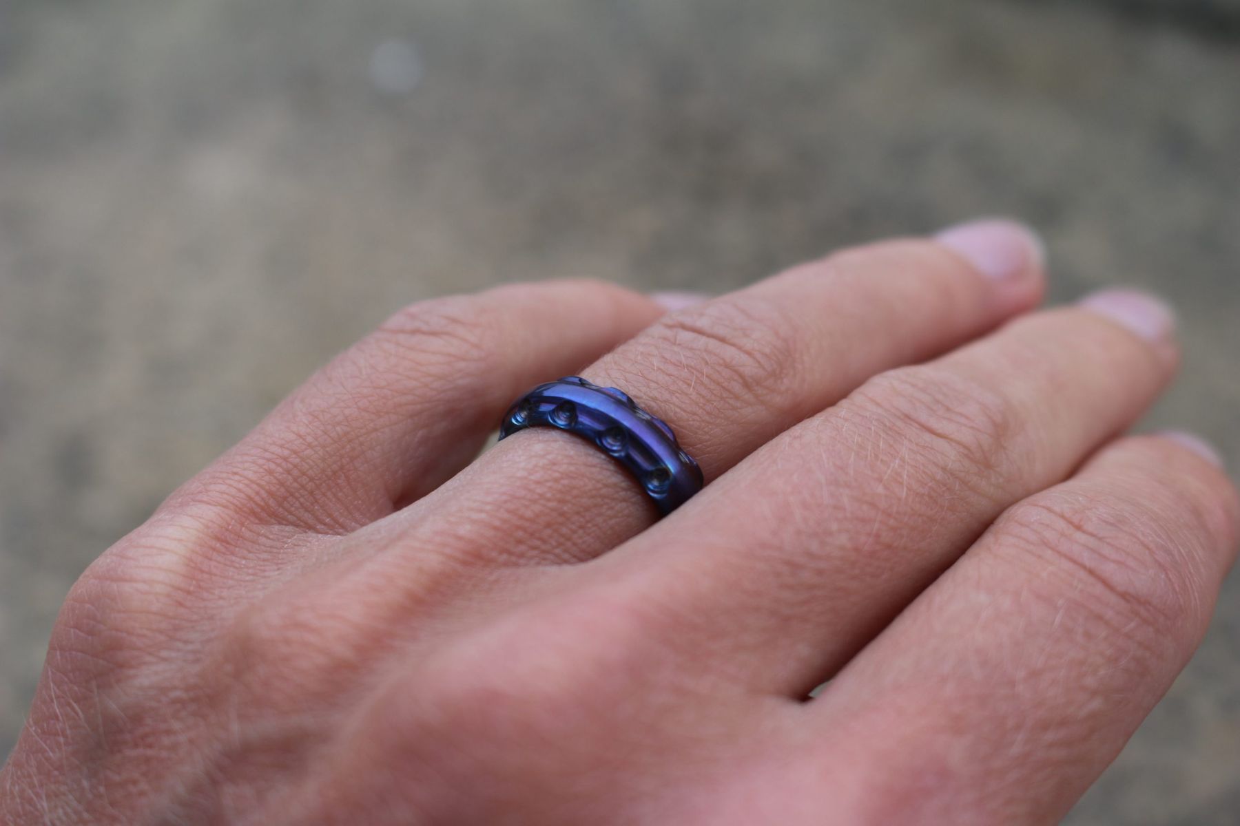 Congratulations and what an unusual ring, safeguard it and leave it at home whilst biking. Why do I say this? Having tried to de-glove my finger on a tree in Wharncliffe I have now taken to leaving my wedding ring at home and installed the Nukeproof Sam Hill guards on the bars. We now call the trail the White Knuckle Ride.