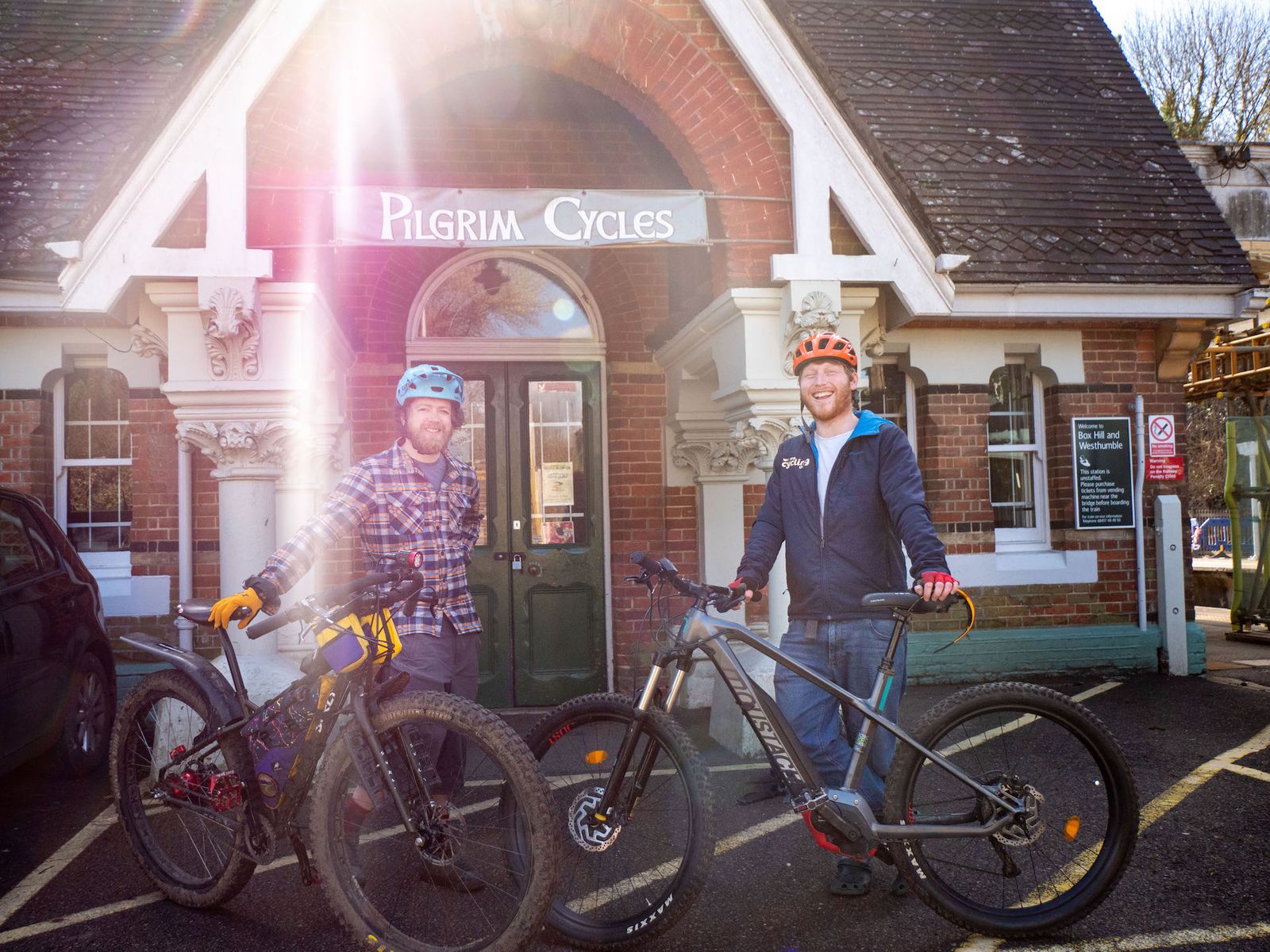 Pilgrim Cycles where you start is a touring bike specialist, so it’s well-stocked for spares. Dave, the owner, is often happy to help with minor repairs. You pass Santa Cruz dealer Pedal & Spoke in Peaslake (twice). For an e-bike, Robby hired his from Electric Bikes Guildford, ~15 miles from Westhumble