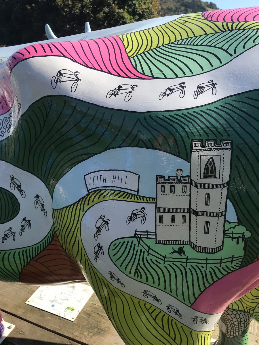 Still, it’s a popular destination for walkers, no doubt due to the parking opportunities and café. We’re barely a mile into our ride, and a coffee tempts, but a long queue isn’t attractive, so instead we go and check out the two painted fibre glass cows in a little pasture outside the estate’s shop. A couple of years ago, one was a victim of cattle rustling, which caused a bit of a stir in the local press – real cow theft doesn’t get column inches. It was destined to be sold to raise money for Cycling UK – the charity where I work in the comms department. The first I heard about this was one Friday evening down the pub when a journalist called, asking what I thought the thief’s motive was.