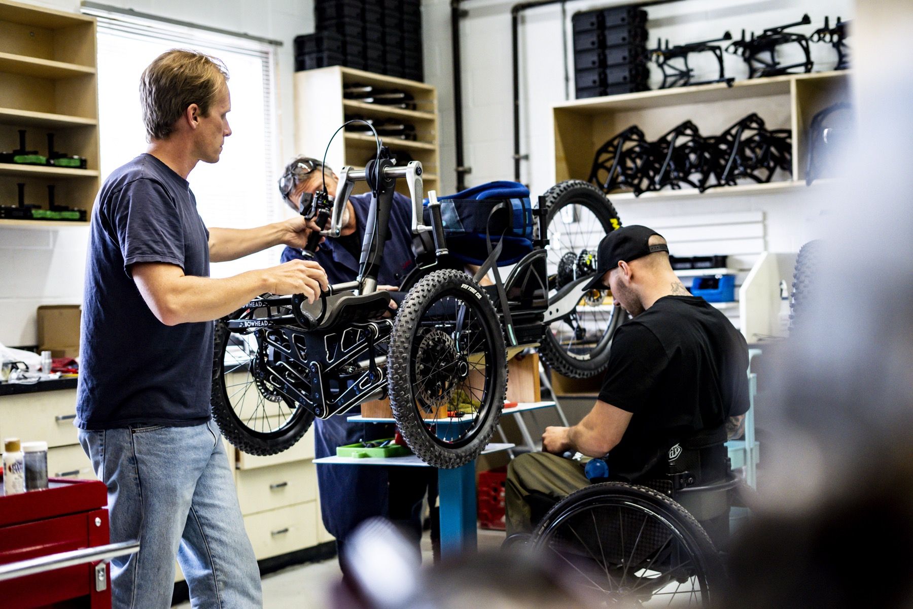 We’ve previously talked to Bowhead Corp founder, Christian Bagg, about the development of his Bowhead Reach bikes – e-assist trikes designed to make even some seriously gnarly mountain bike trails accessible to those who can’t pedal. When we talked to him, he mentioned that he was working on a hand cycle, and that work is now done – the Bowhead RX is ready. We thought you might be interested in a closer look.