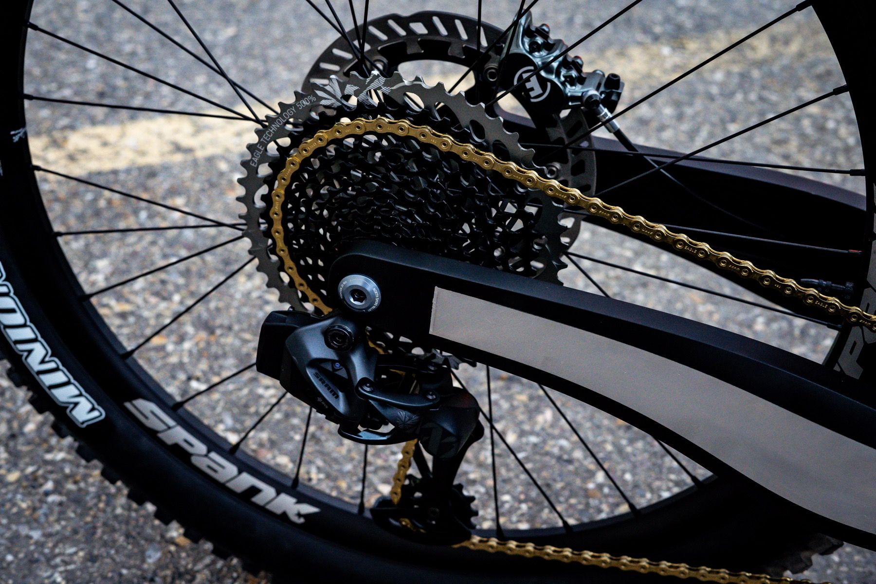 One brake lever controls the two front brakes via a splitter system, while the other controls the rear brake. SRAM AXS shifts gears at the touch of a button – for those that aren’t persuaded by the merits of wireless shifting, this is surely a great example of where it’s really really useful.