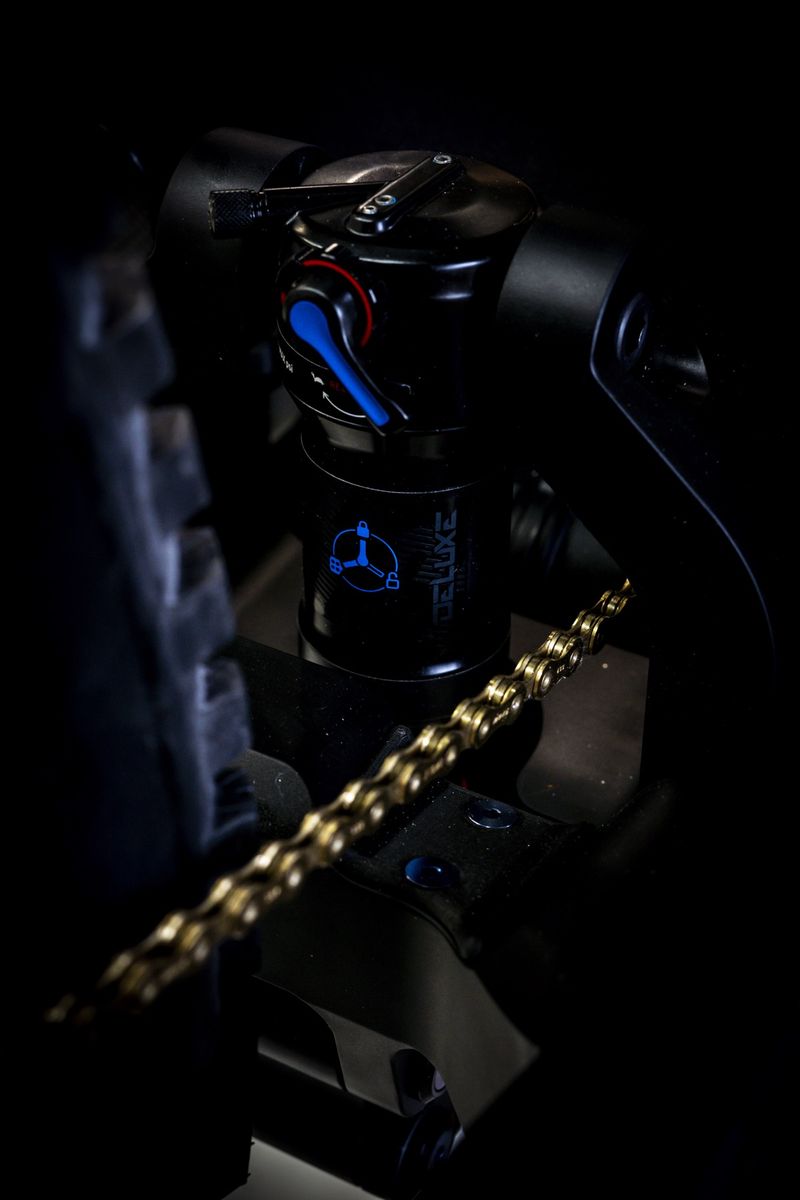 “We prioritized efficient tracking and simplicity on the new rear end. Our single pivot MX style linkage allows users to specify a coil or air shock with its 28% linearly-progressive kinematic. Travel is set to 120mm to match our front end. Single pivot placement minimizes torque forces at the rear axle. Pedal bob and brake jack have been addressed to work with standard disc brake and 12spd wireless MTB drivetrain. A slightly forward axle path provides good bump compliance without stretching the bike in corners. A 3piece swingarm is FEA optimized to reduce the unsprung mass. 200mm rotor, UDH,157x12mm Boost compatibility. Everything is tied together by a superbike MotoGP style aluminum subframe.”