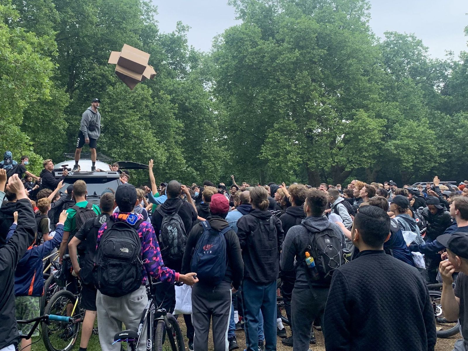 Miles Carter aka @DaddyMilo is a London based stunt rider who was along for the rideout. We asked him to capture the atmosphere and show us this urban world of mountain bikes.