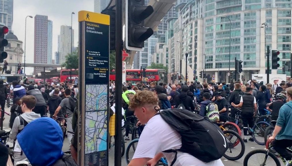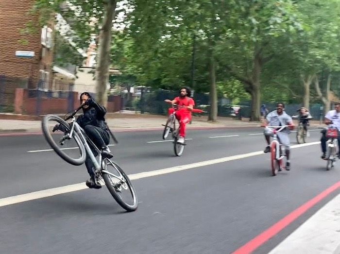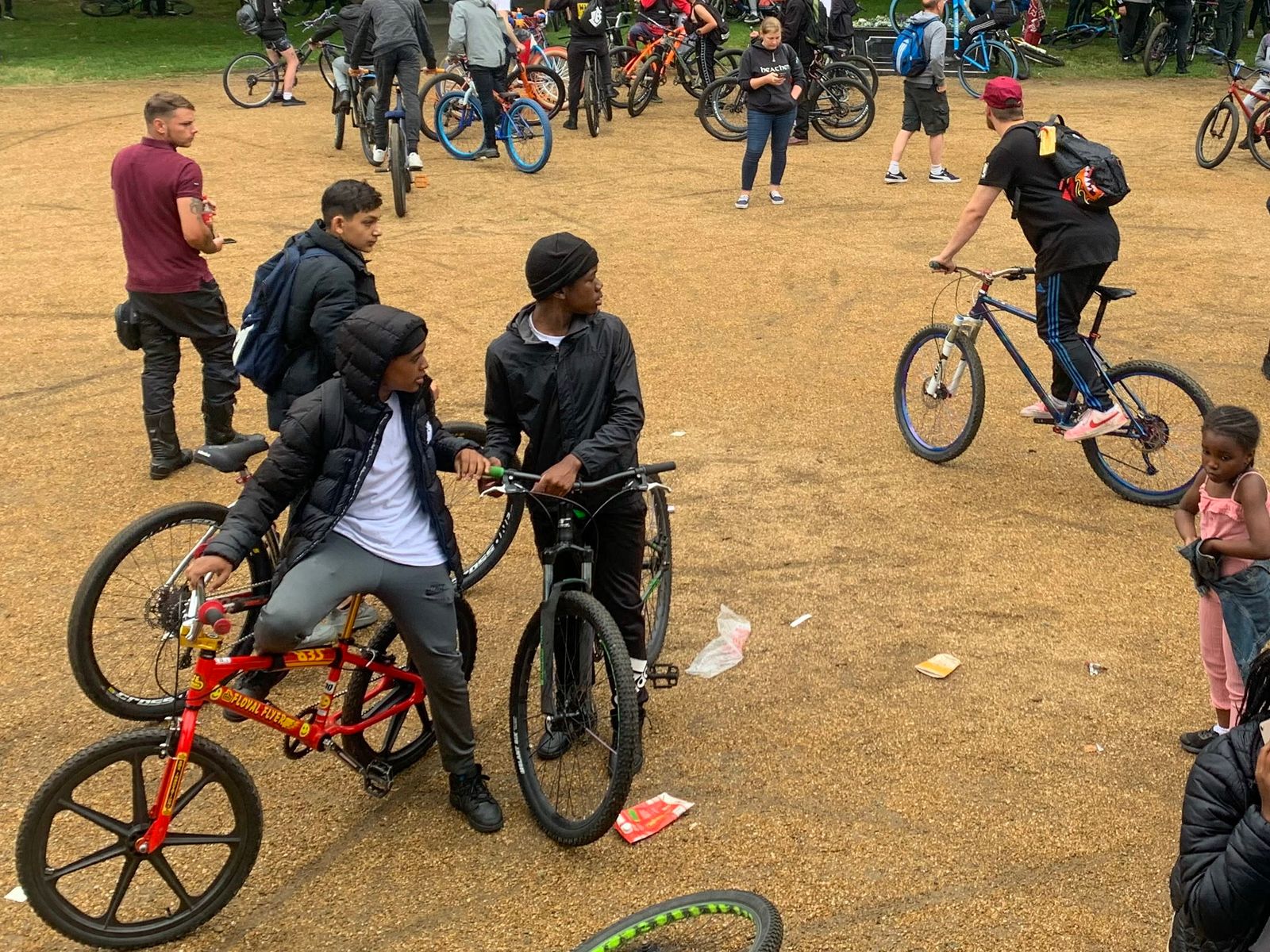 BikeStormz is sponsored by brands with urban fashion cred rather than bike race results to their name. Nicce, Merky and Sprayground fashion brands sit alongside more bike familiar brands Stance socks and Adidas. Nutrition support is by Nandos, not a gel brand or energy drink. These sponsors are buying into the Bikestormz aim of showing the youth in urban areas that there are positive opportunities and activities available to them. The hashtag #KnivesDownBikesUp is part of the message, and riders are told to leave any gang affiliations at home if they’re joining the rideout. It’s a space for safely enjoying bikes.