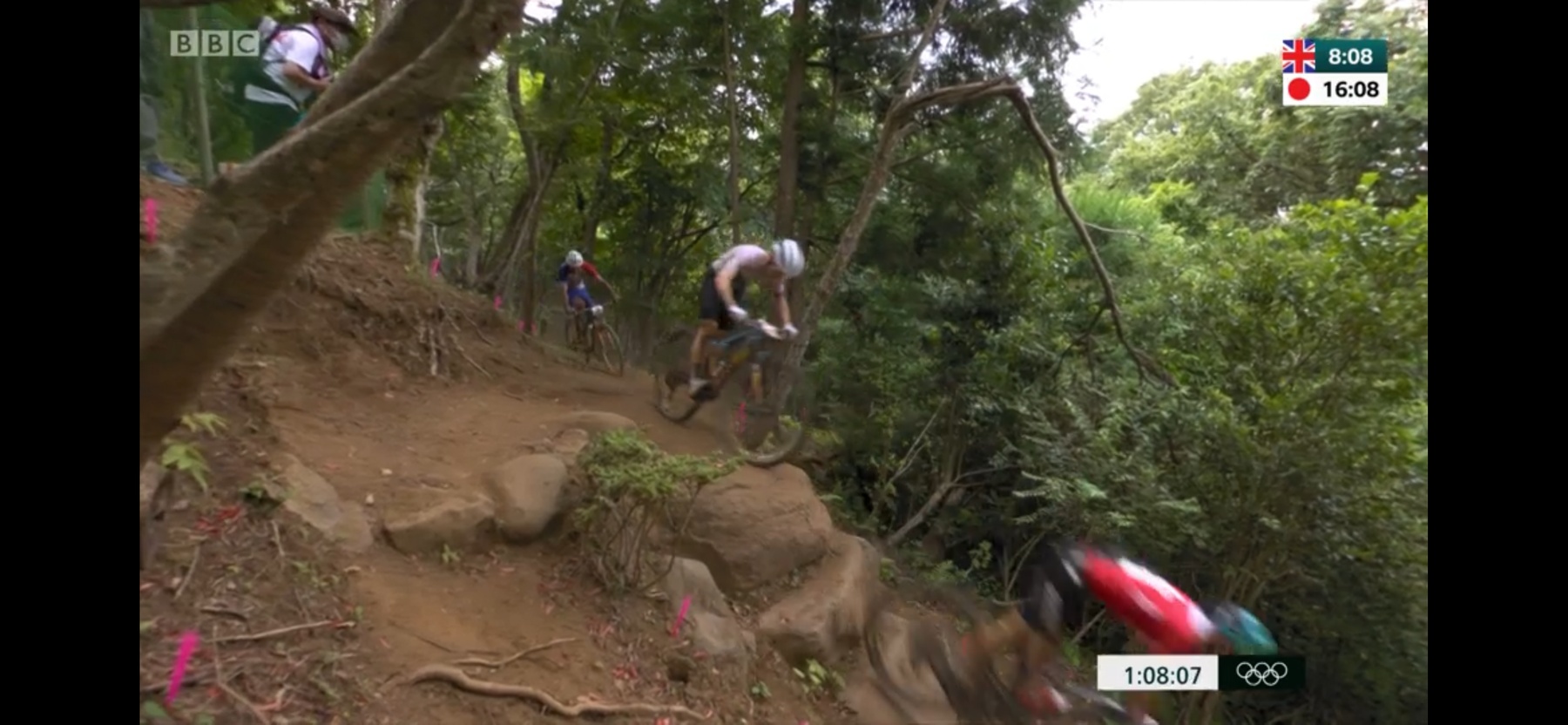 The men’s Olympic mountain bike race threw up more than a few surprises. Van der Poel crashed and Pidcock started 4th row back on the grid. The usual suspects Schurter and Flueckiger formed a small group up front with Pidcock, and Cink chasing.