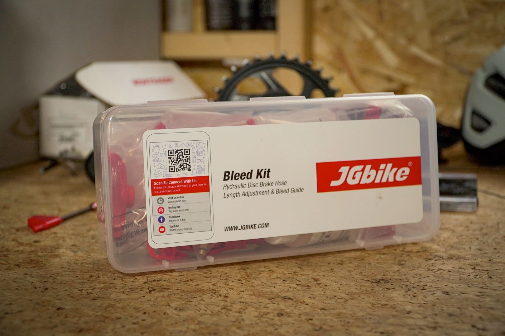 A complete brake bleed kit for SRAM brakes including DOT 5.1 oil, gloves and all the various tubes, fixtures and fittings. There’s even a spare SRAM compatible Stealth-a-majig.