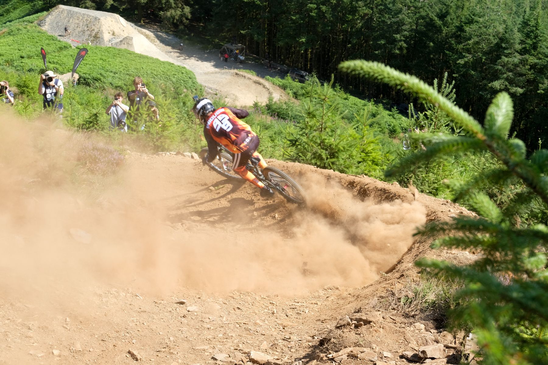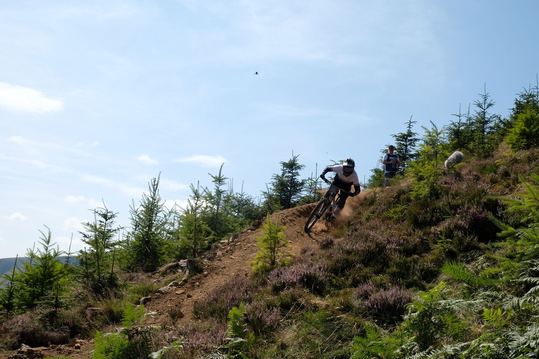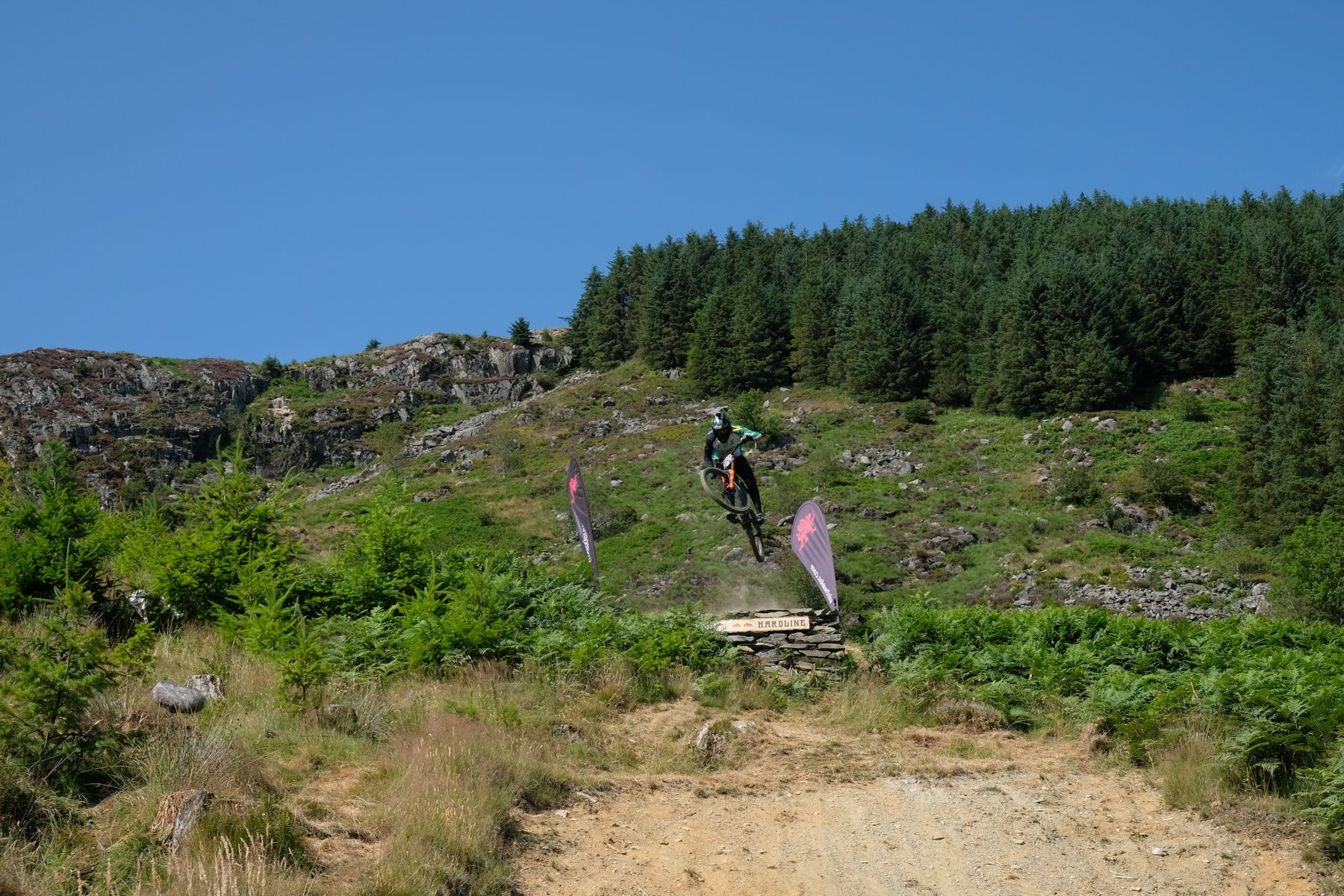We took a walk down the Redbull Hardline track during race runs to try and catch some of the moments between the big features. Clouds of dust, shale flying, the buzz of the Redbull drone and 28 of the world’s bravest riders.