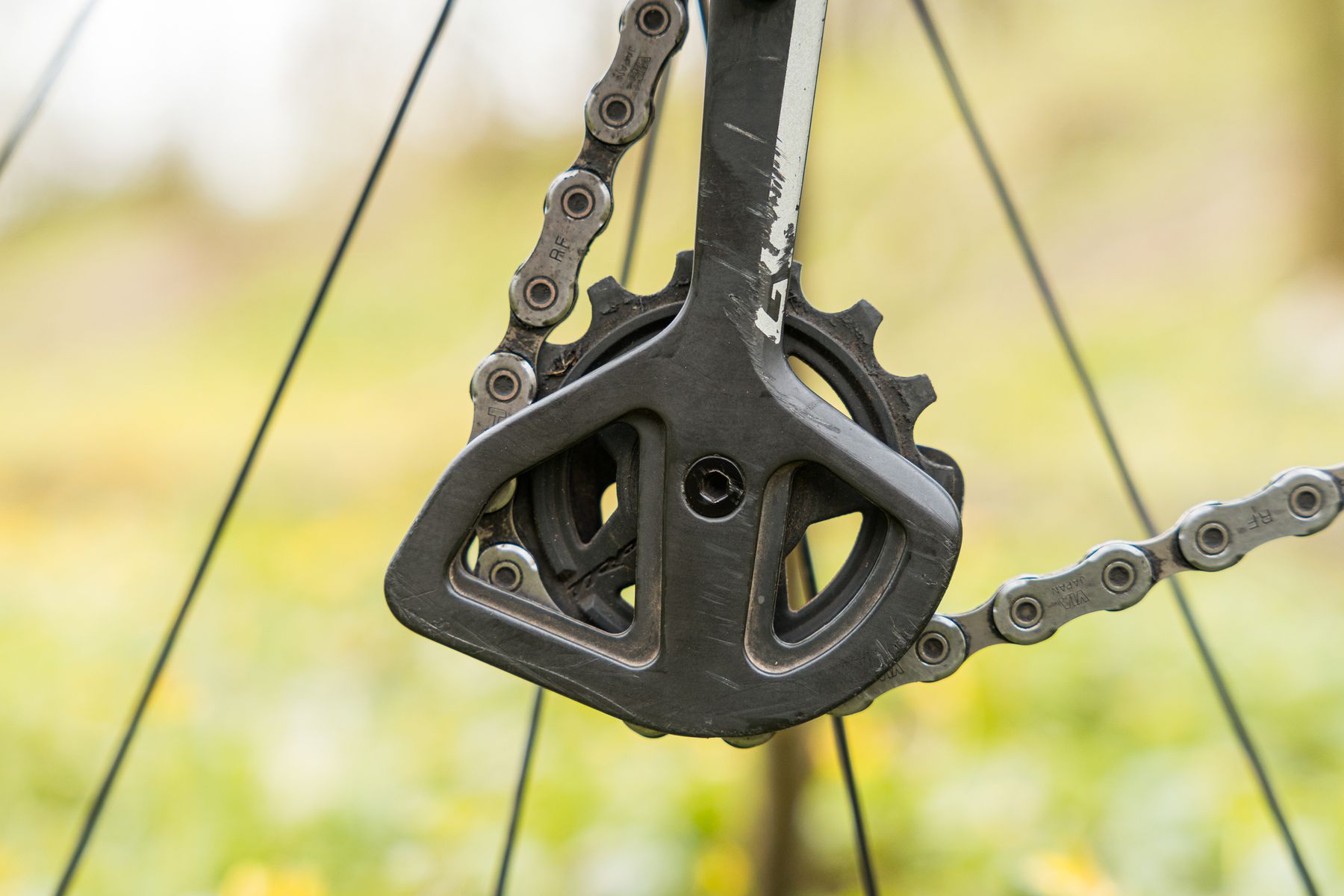 Set up is super easy, with a guide on the inner cage of the mech to help with adjusting the b-tension screw, and there’s another printed guide round the front to help with chain length – just line everything up and away you go. The mech is limited to cassettes with the largest cog of 50 teeth, so Shimano 10-51t or SRAM 10-52t cassettes are a no go. I ran the mech exclusively on an E*13 Helix R cassette (9-50t), with no issues.