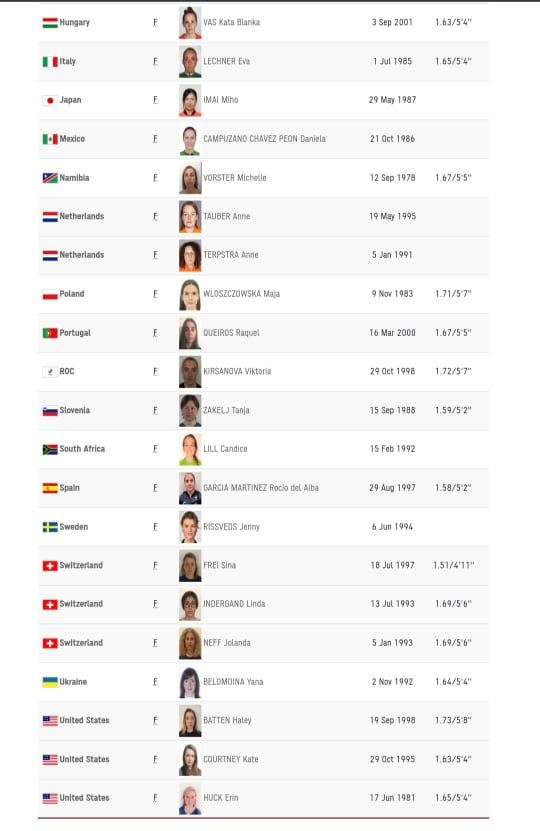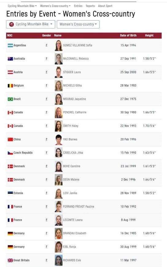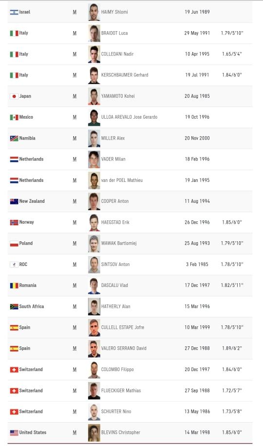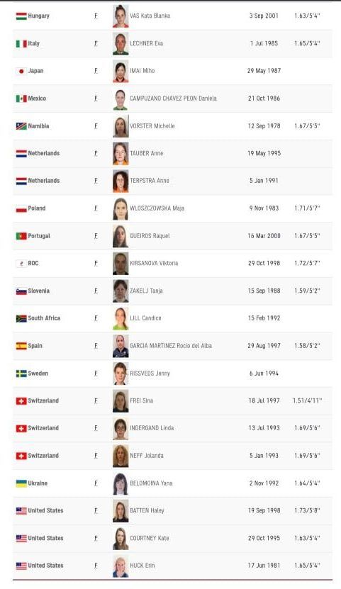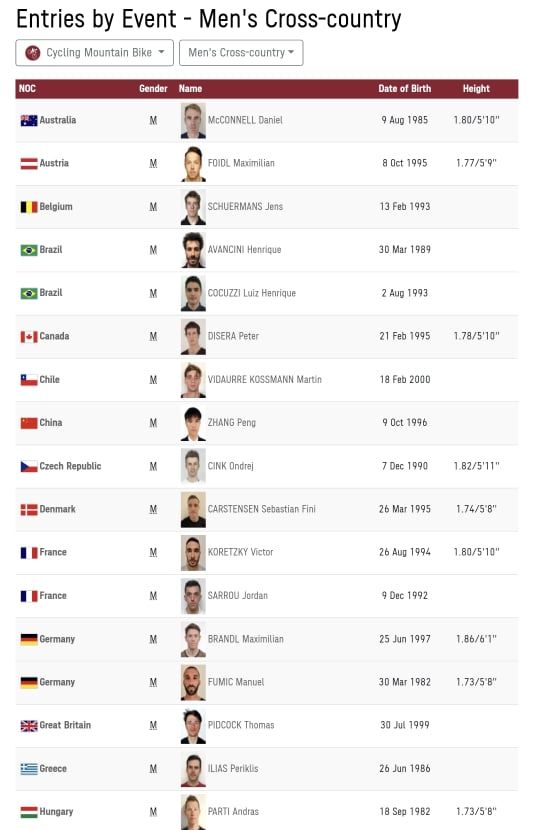 Unlike a World Cup round, the Tokyo Olympics only has 38 competitors. So, 38 women, and 38 men.