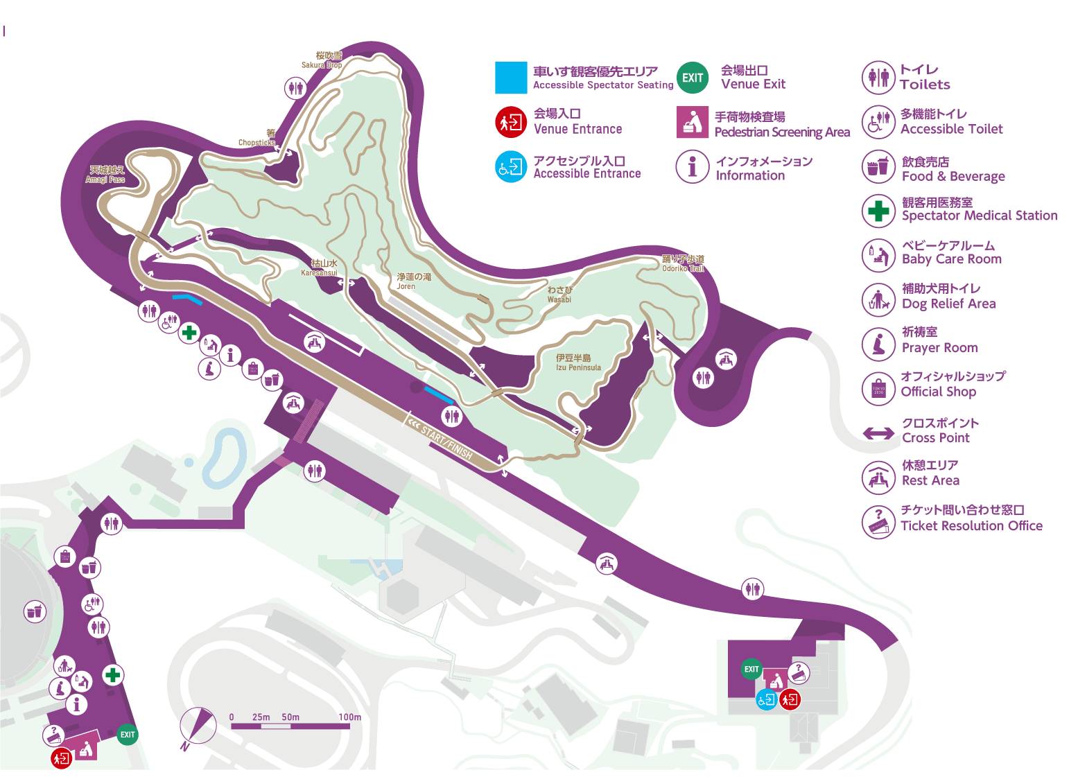 The new 4,100m off-road Izu Mountain Bike Course has a vertical height difference of 150m and is set to be harder than previous Olympic courses. Various sections of the course have been given names including Amagigoe, Joren-no-taki, Hashi, Wasabi, Odorikohodo and Karesansui, according to their different characteristics.