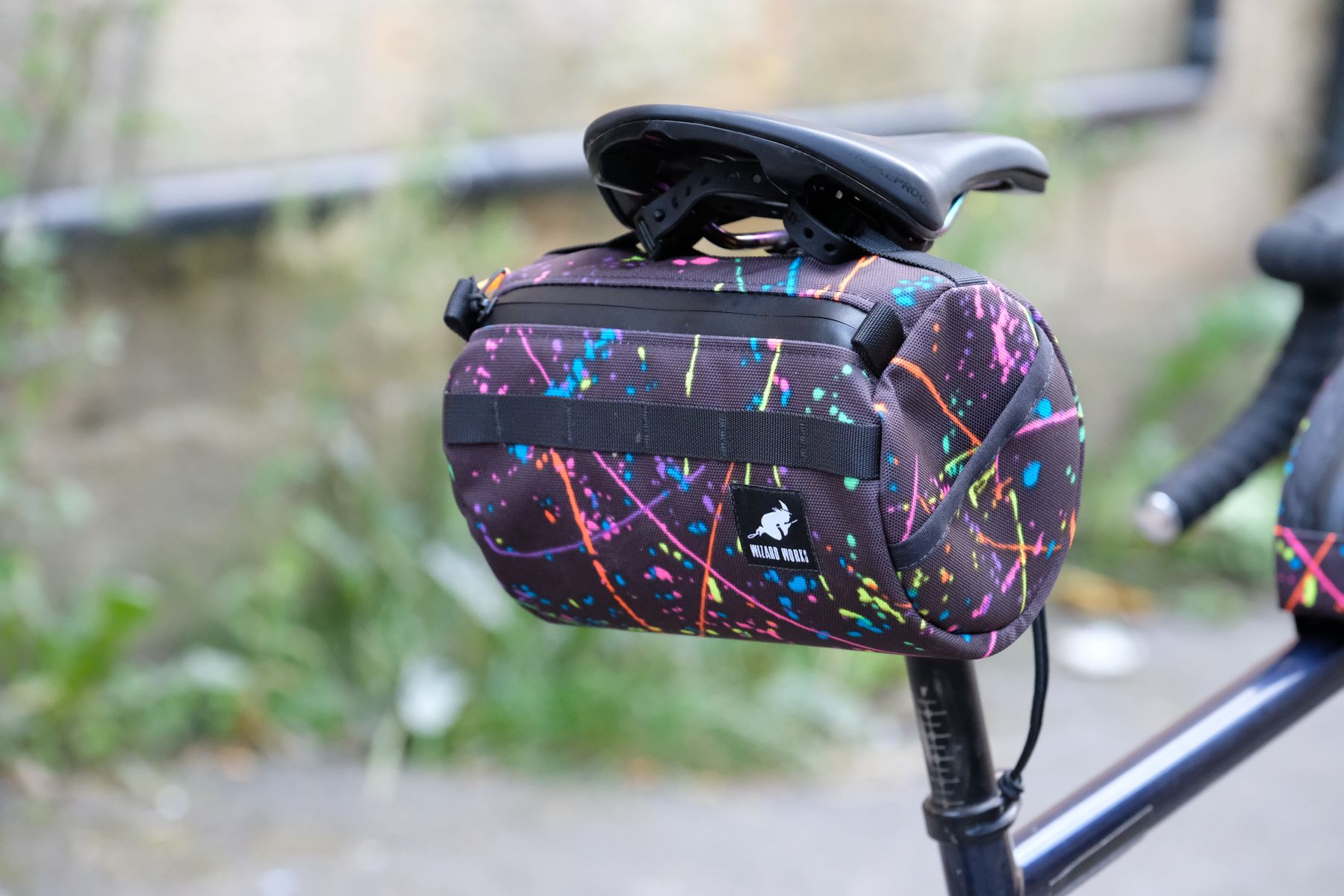 The bag attaches to your bar or saddle using Voile Nano straps – secure rubber that won’t damage carbon bars, and won’t shuffle out of place. Wizard Works advise that you need saddle loops like on a Brooks saddle, but I’ve had no issues mounting this to my Nukeproof saddle, and it’s surprisingly secure when you use the drawstring cord provided to hold it to the seatpost and stop it swinging back and forth.