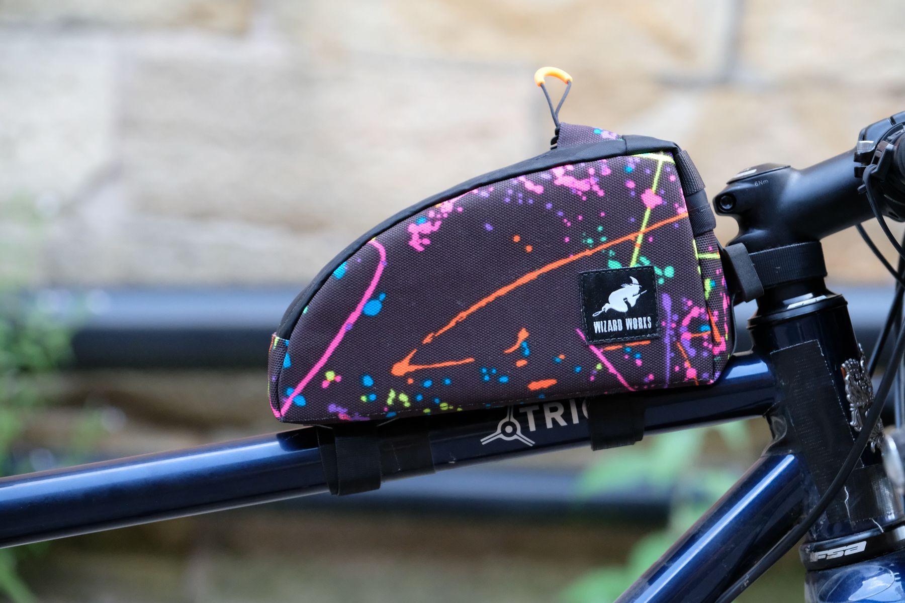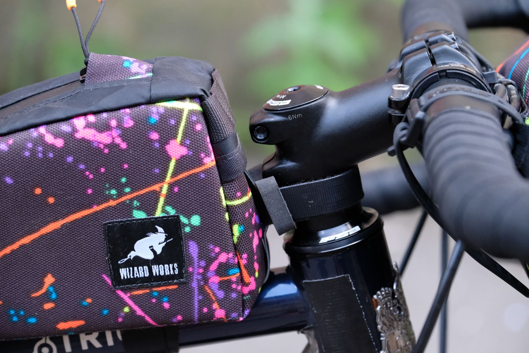 The Wizard Works Go-Go Top Tube Bag is available in two sizes, this one being the medium. You can get a 3D printed Nylon top tube accessory for securing the pack if you have a low stack height. It’s £15 extra for this, and so far I haven’t struggled with the fit for the stem strap.
