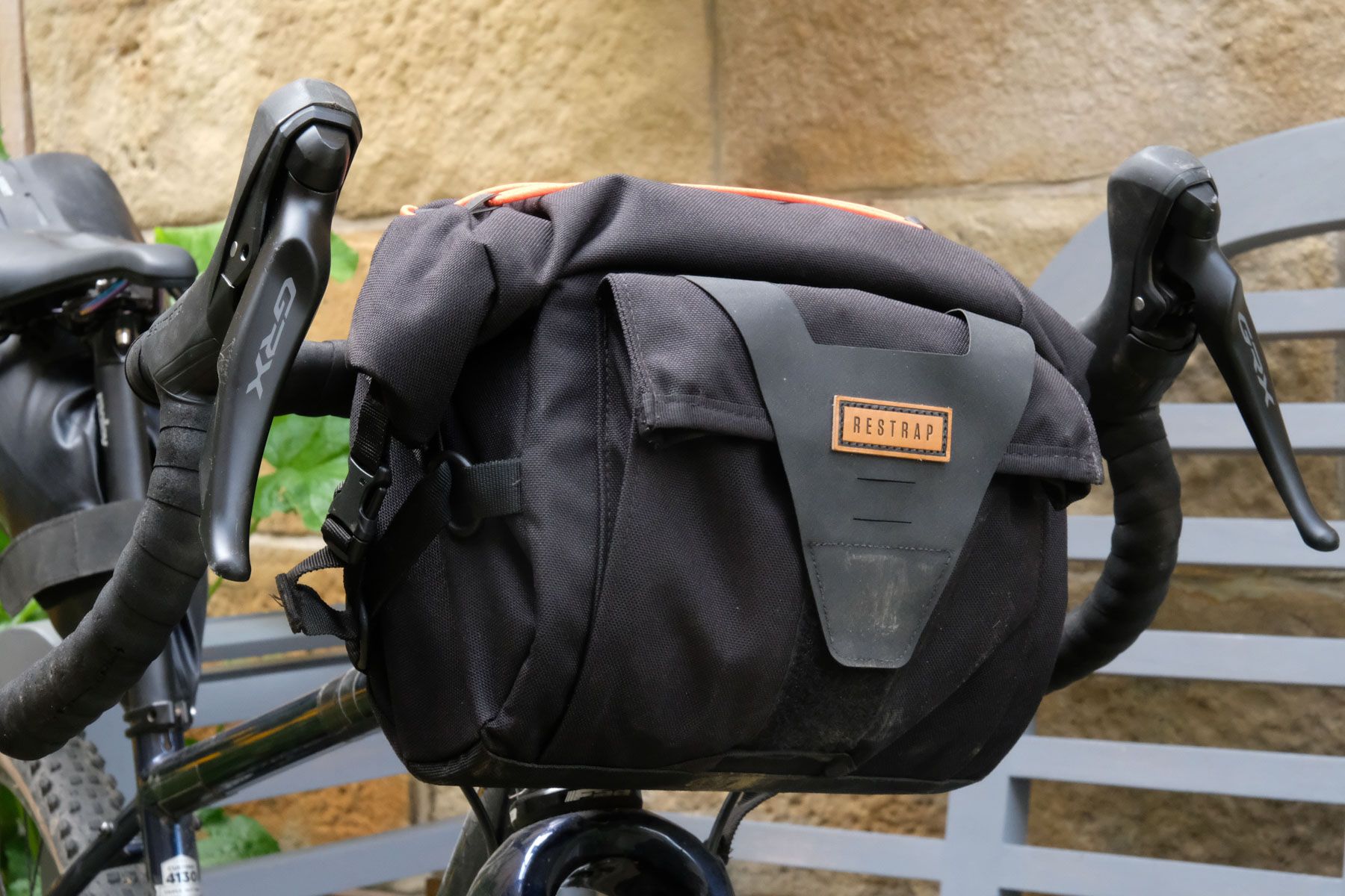 This 10litre capacity bar bag from Restrap is designed for big days out, shopping trips, photographers, and anyone that just likes to carry a lot of stuff they want easily accessible. Restrap packs are all handmade in Yorkshire from 100% waterproof textured nylon, with a nylon lining. This one features an elasticated drawcord storage space on top to easily stuff jackets or gloves in, two roll-top compartments, space for a D-lock to be stored and some structural rigidity to help with the size.
