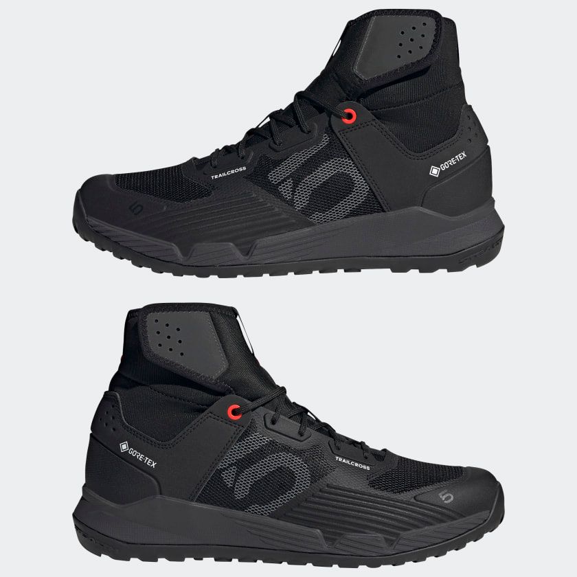 The all-new Five Ten Trailcross GTX is the first-ever flat pedal shoe that features GORE-TEX durably waterproof, breathable technology. Now you can ride in rain, mud, sleet and snow all the while keeping your feet dry.