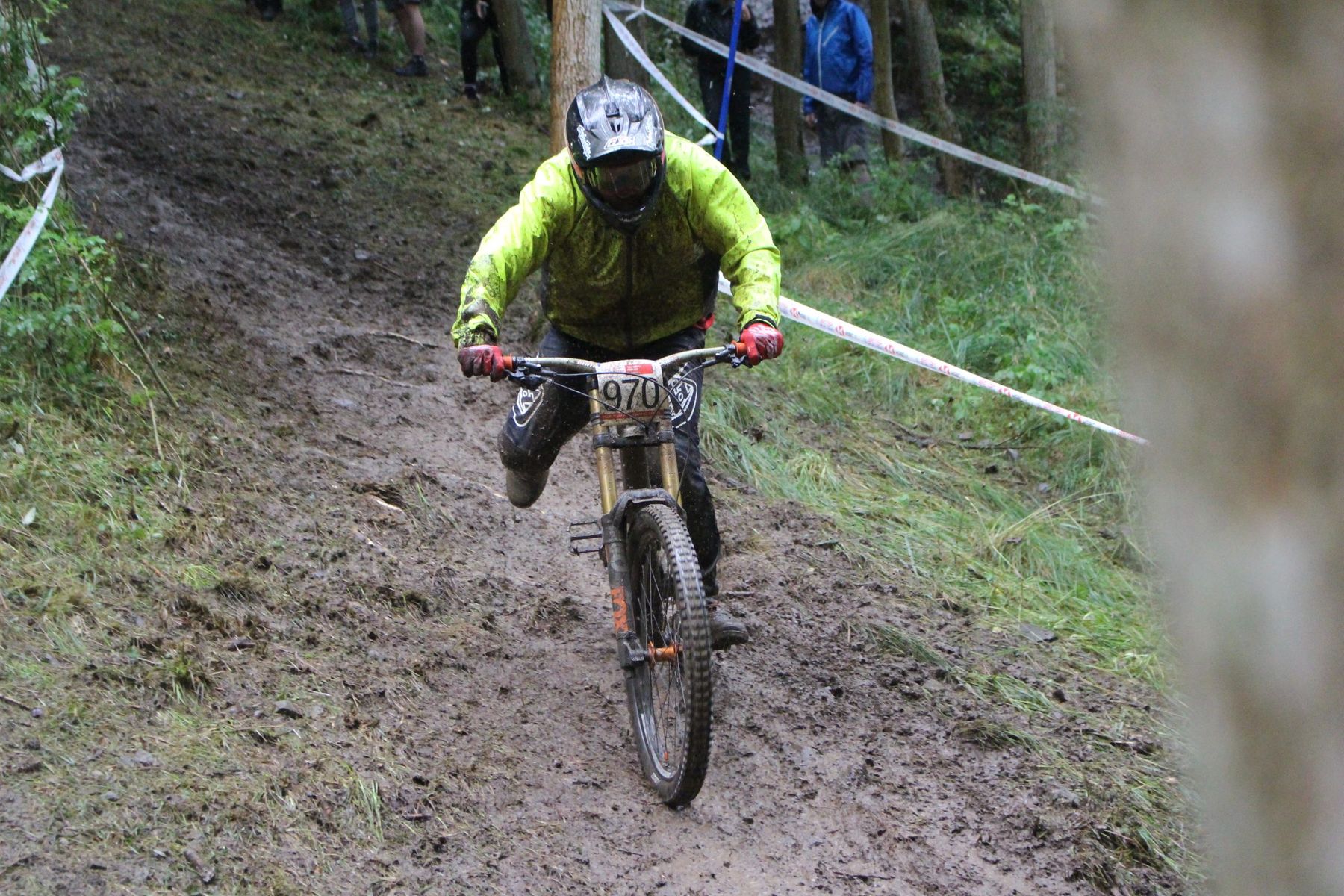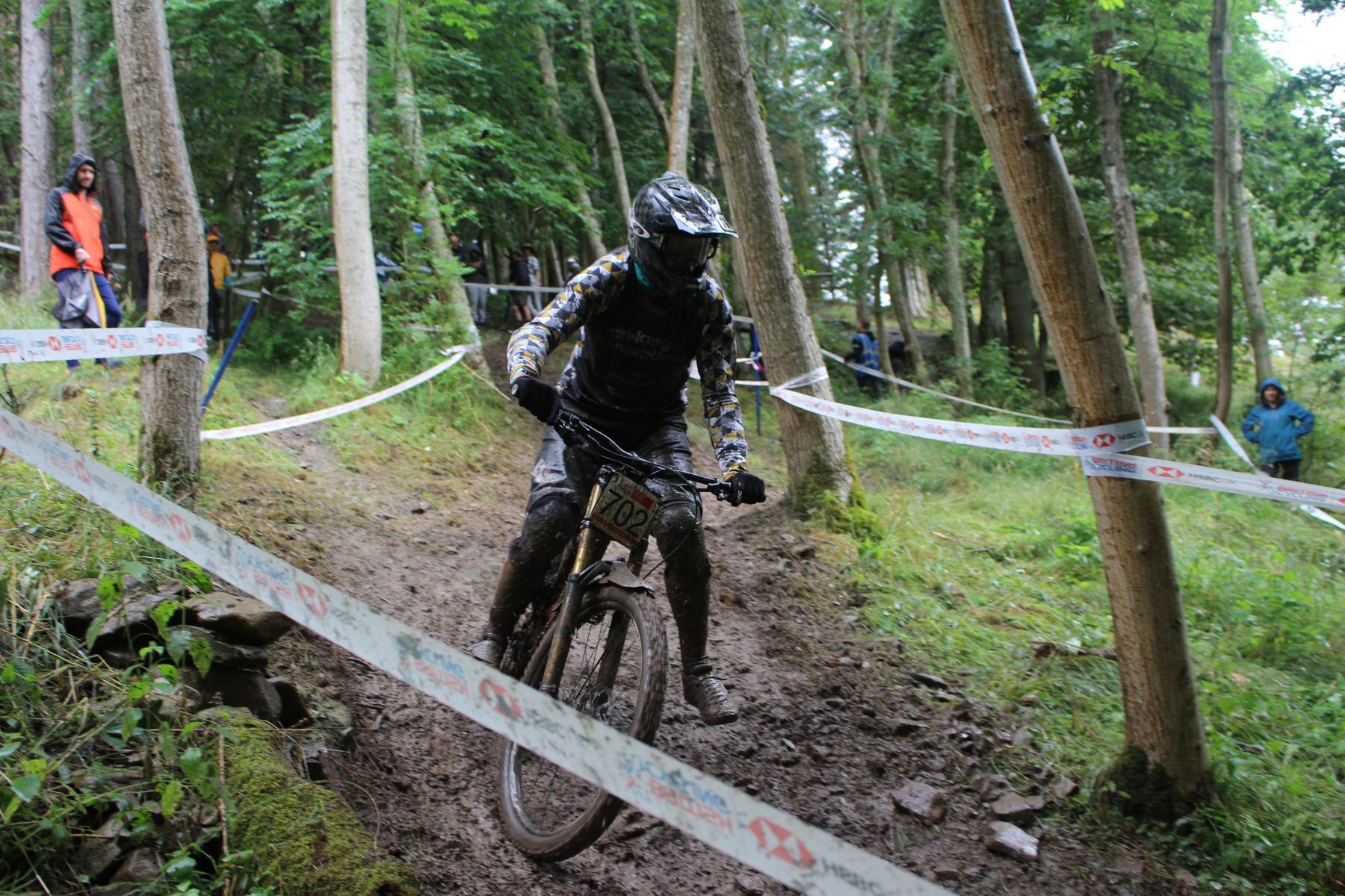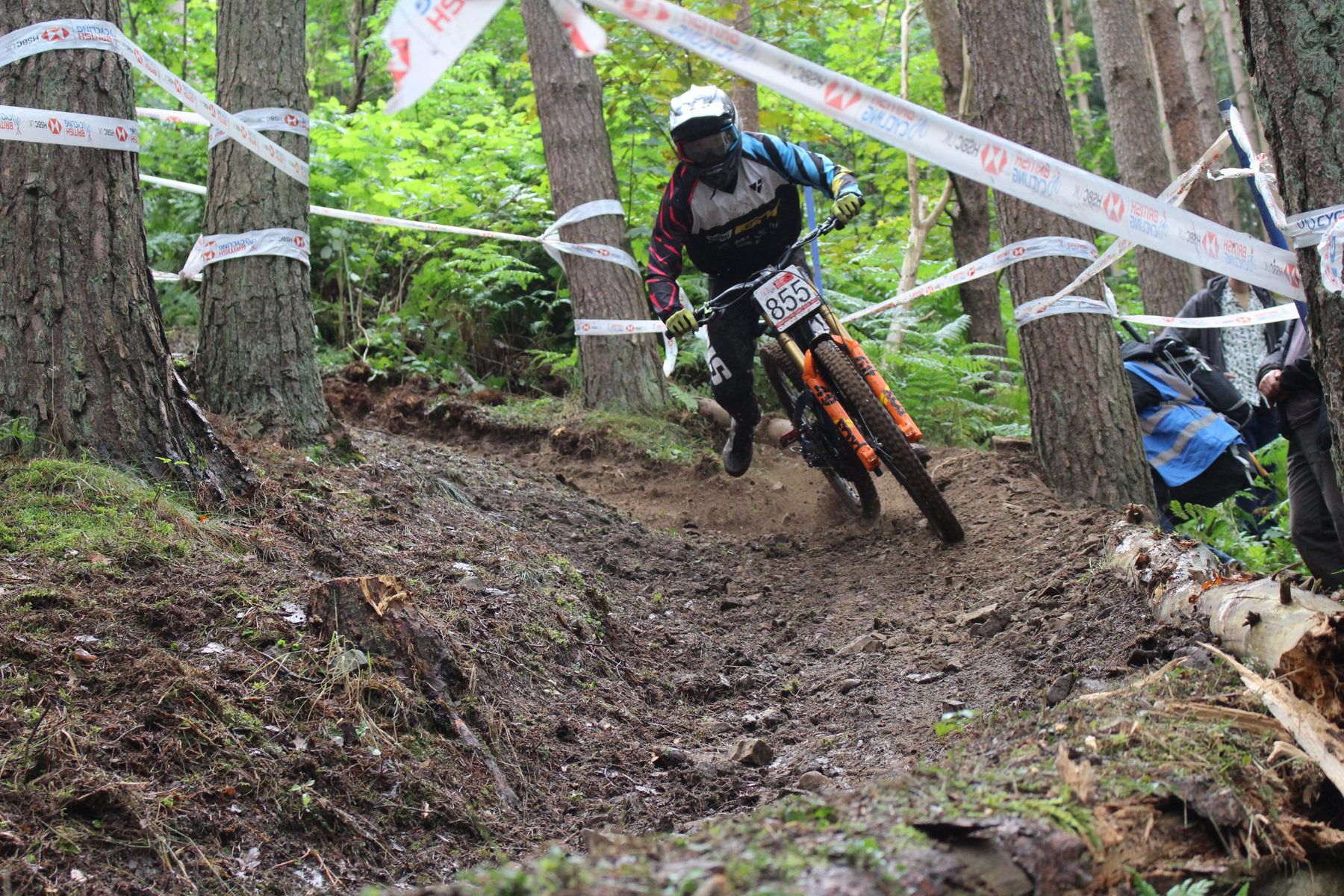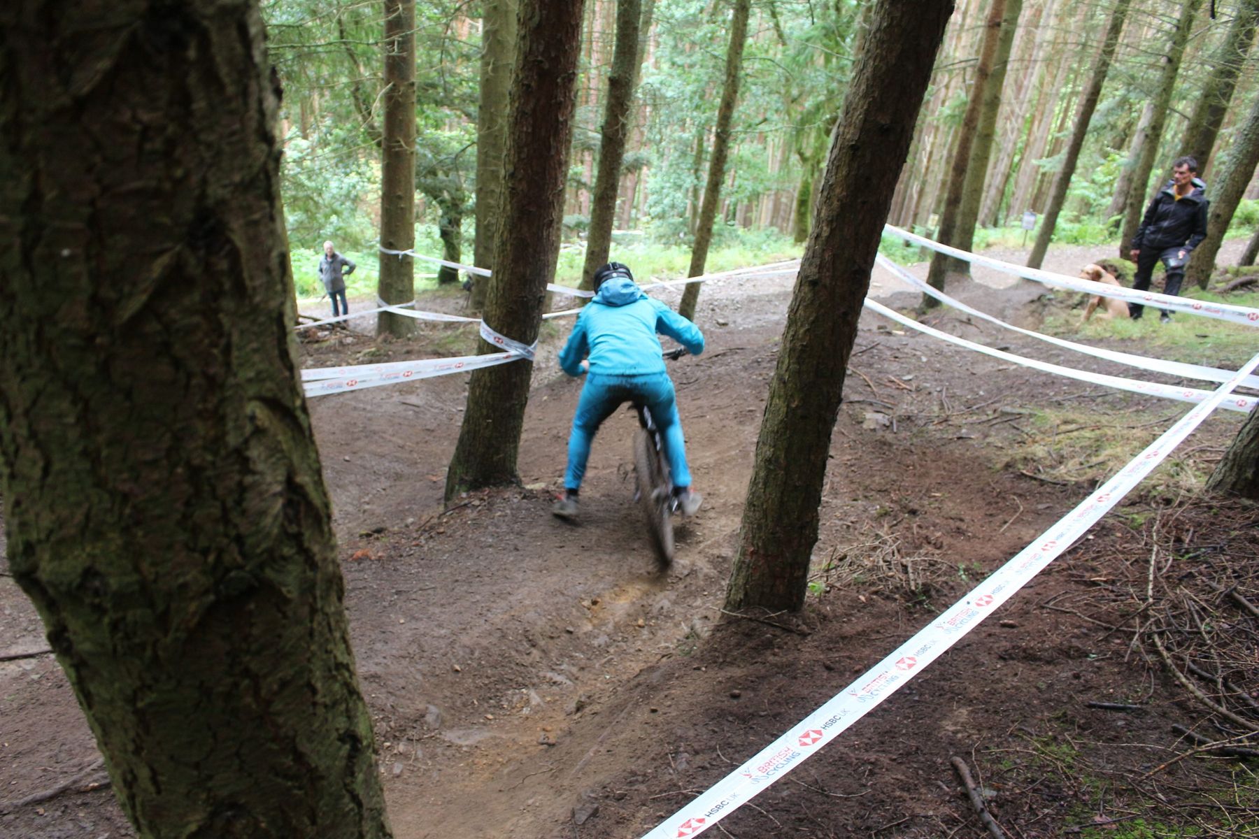 Hannah went up to Innerleithen as chauffeur to her partner Fahzure. Being from the dry and dusty lands of Slickrock, where riding on muddy trails is considered bad for the trails, he’s barely ever ridden a bike in the rain before. So what better event to choose for his UK racing debut than the Scottish Downhill Association’s Innerleithen round of the BDS and Scottish National Series? Hannah took the camera.