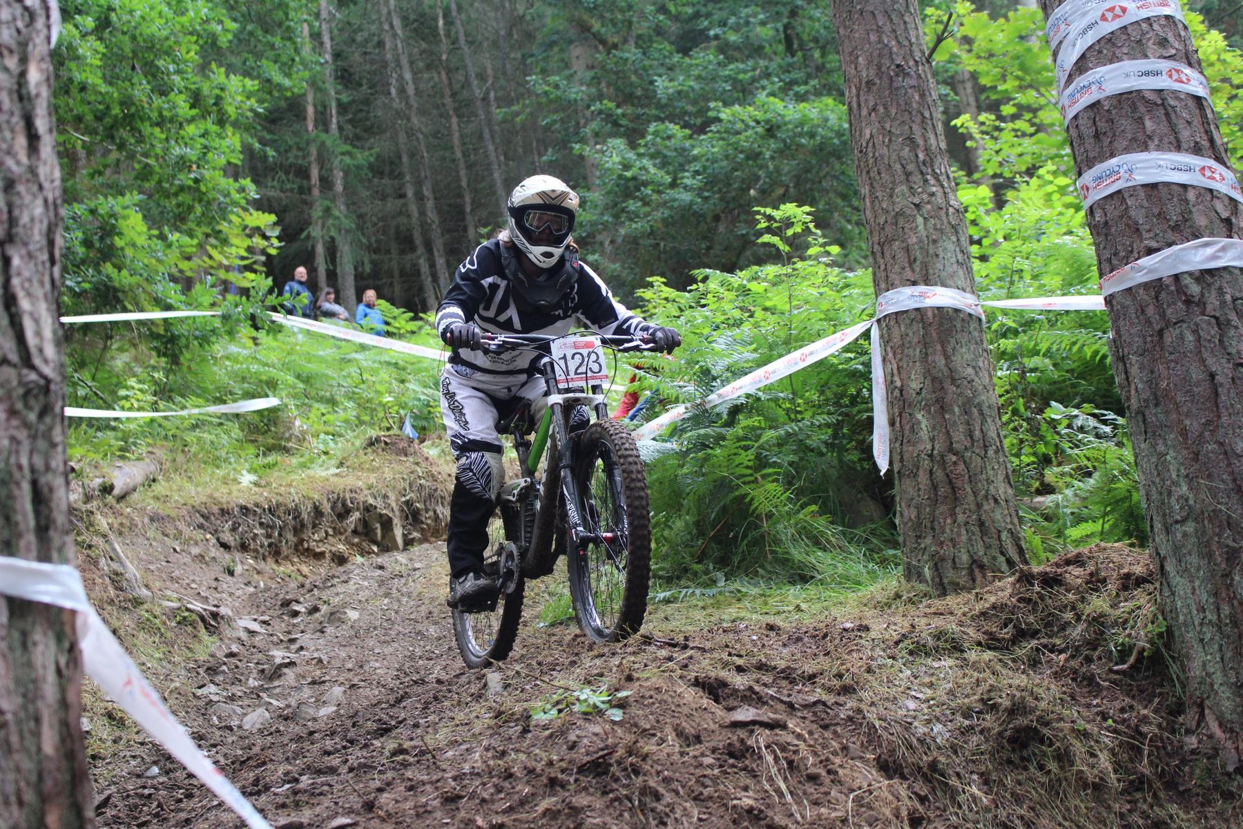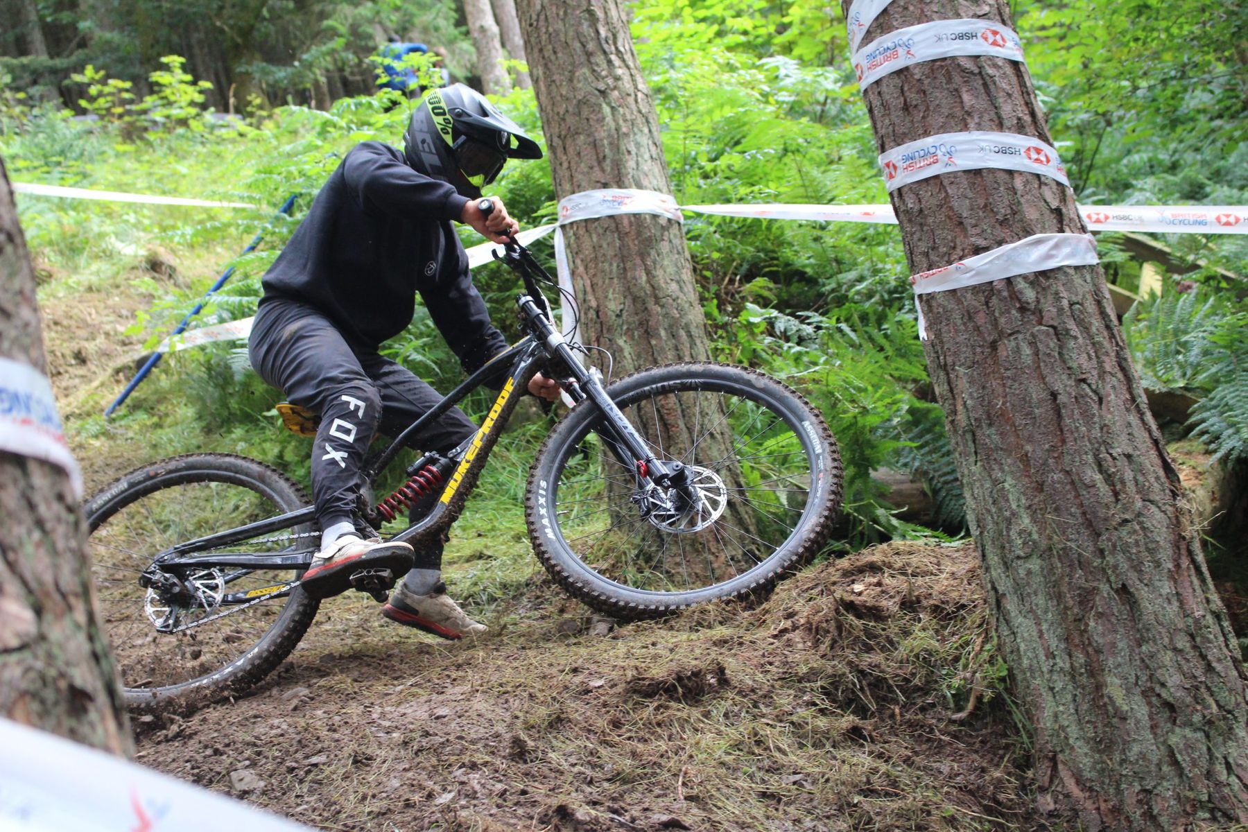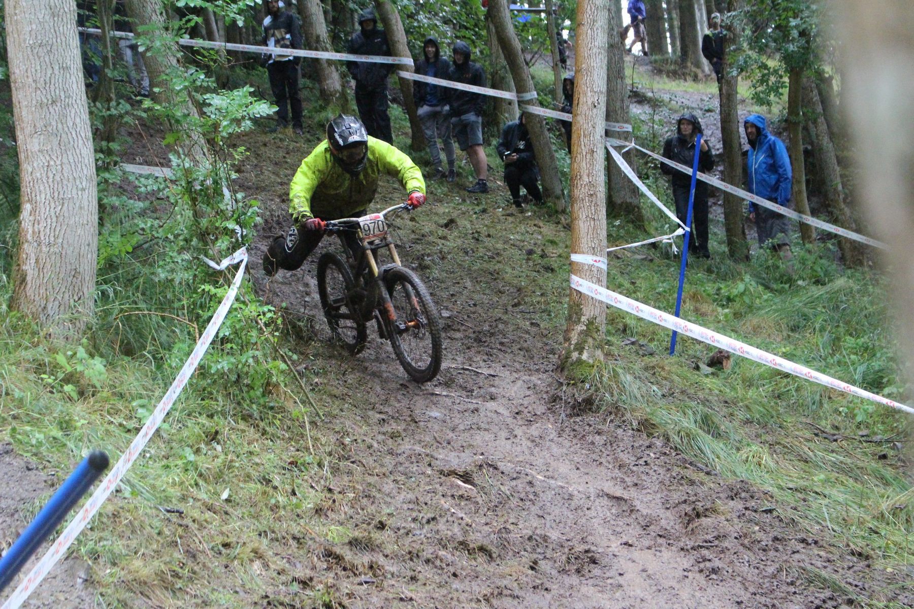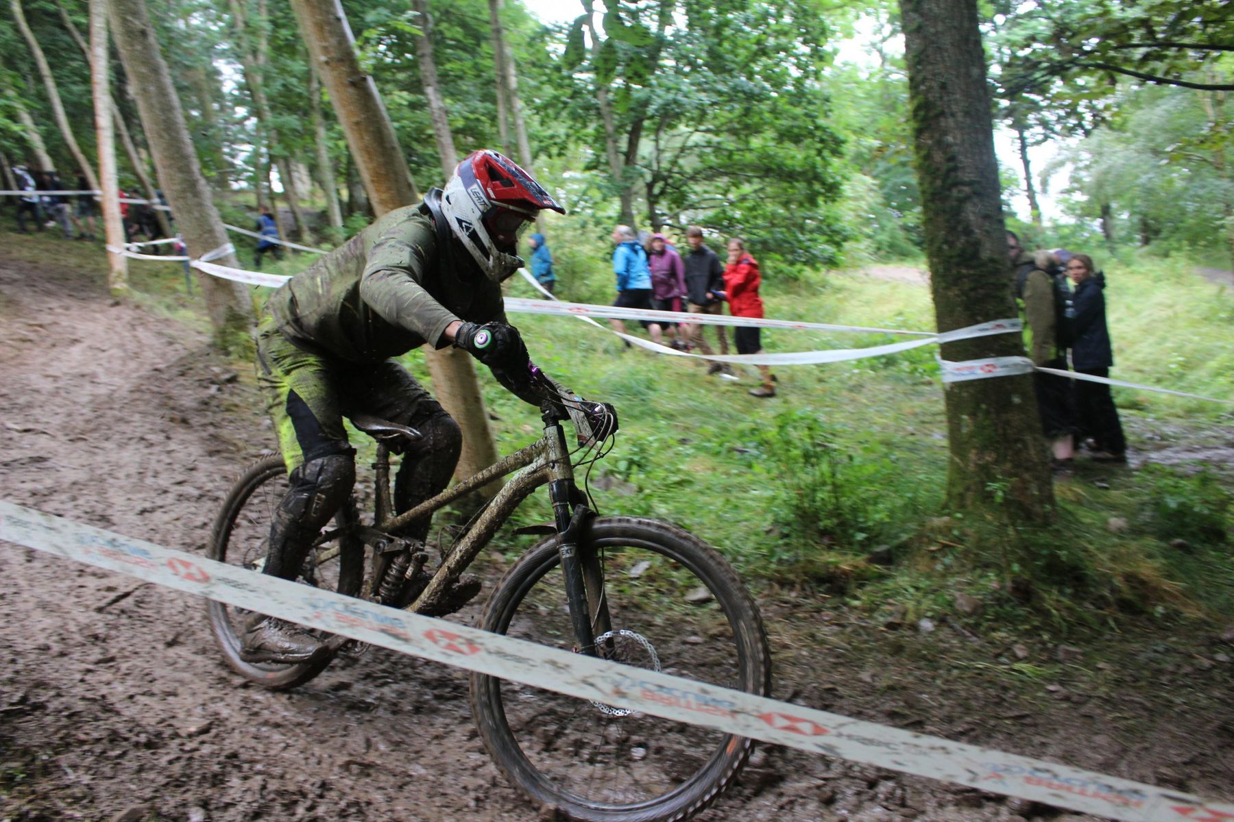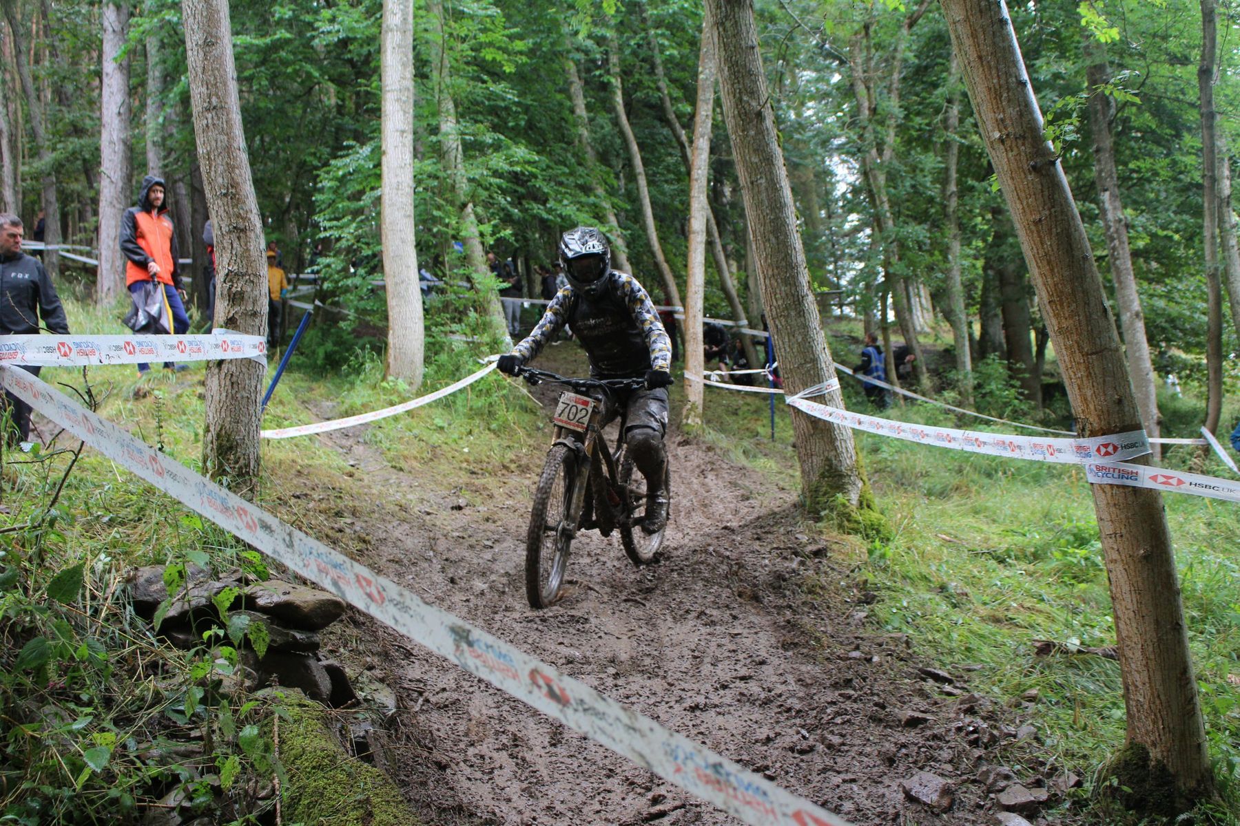 Hannah went up to Innerleithen as chauffeur to her partner Fahzure. Being from the dry and dusty lands of Slickrock, where riding on muddy trails is considered bad for the trails, he’s barely ever ridden a bike in the rain before. So what better event to choose for his UK racing debut than the Scottish Downhill Association’s Innerleithen round of the BDS and Scottish National Series? Hannah took the camera.