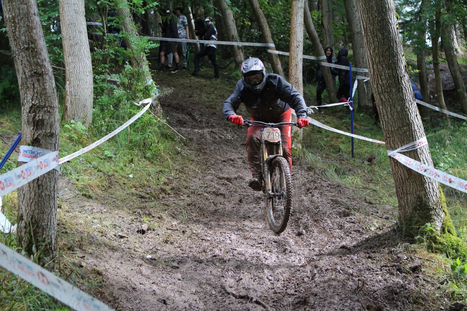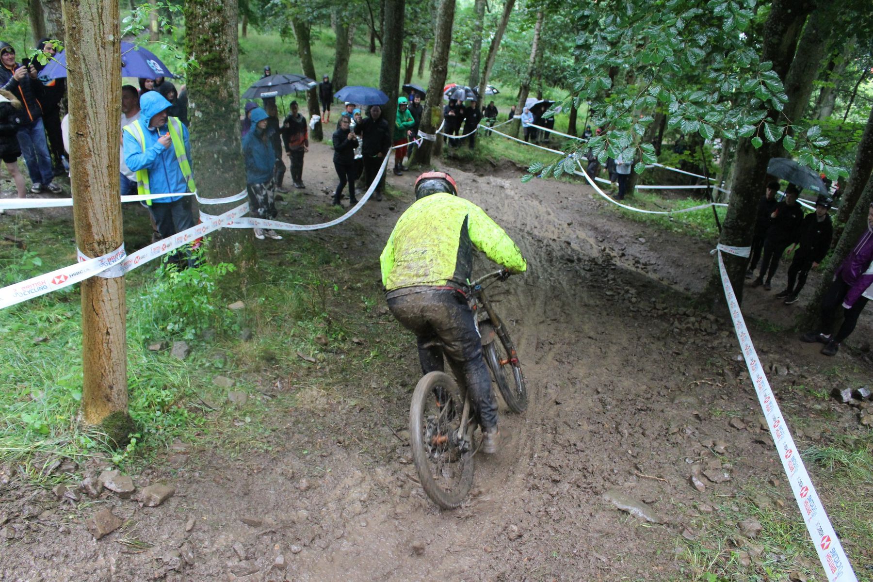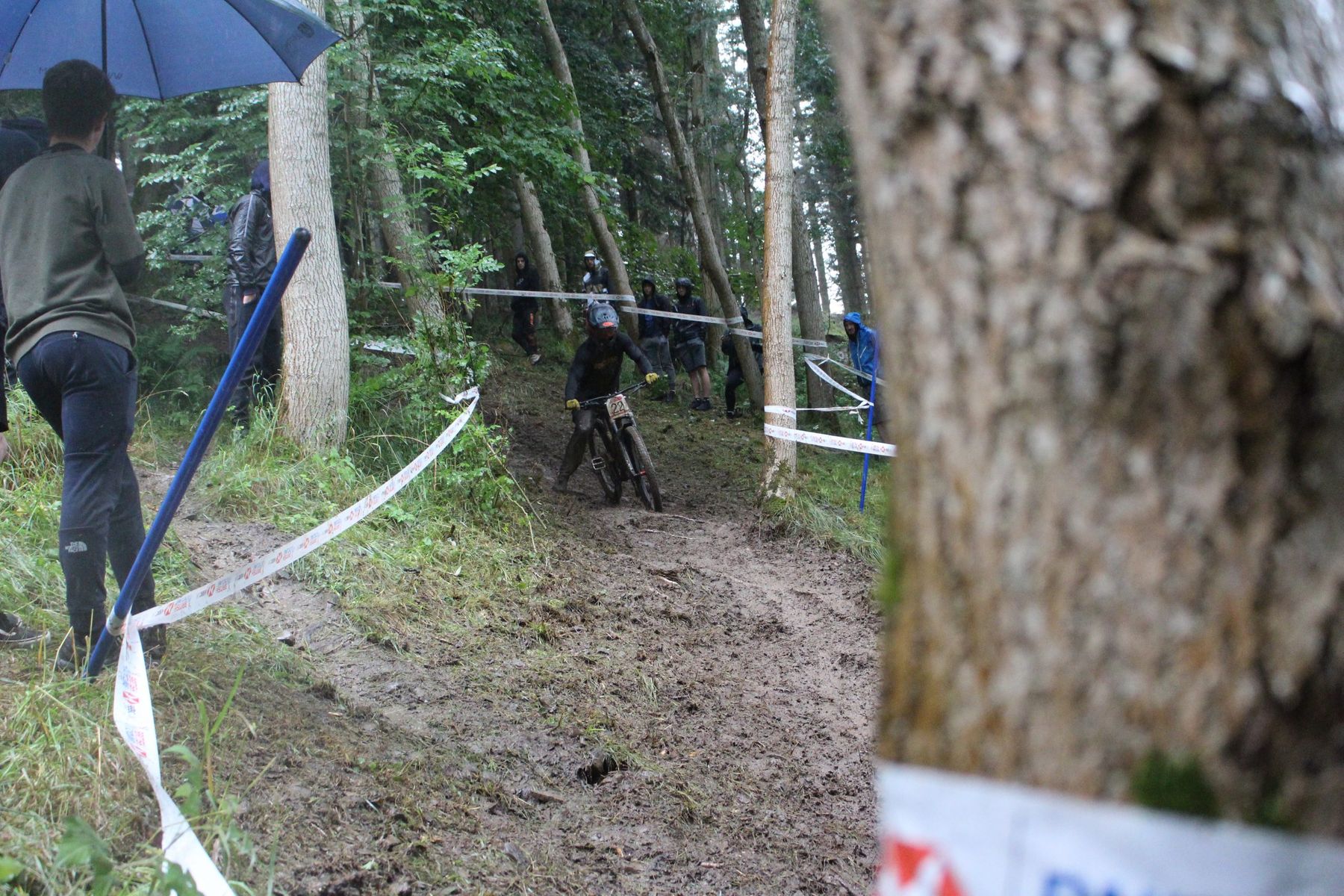 Conditions were slippery and sloppy by the time it got to race runs, with the heavens opening and dumping their contents on riders, spectators and the course for a solid hour, just as the first riders were sent down. It was a race run that really wasn’t over until you’d crossed the line, with plenty to trip you up even within the final 10 seconds of the course.