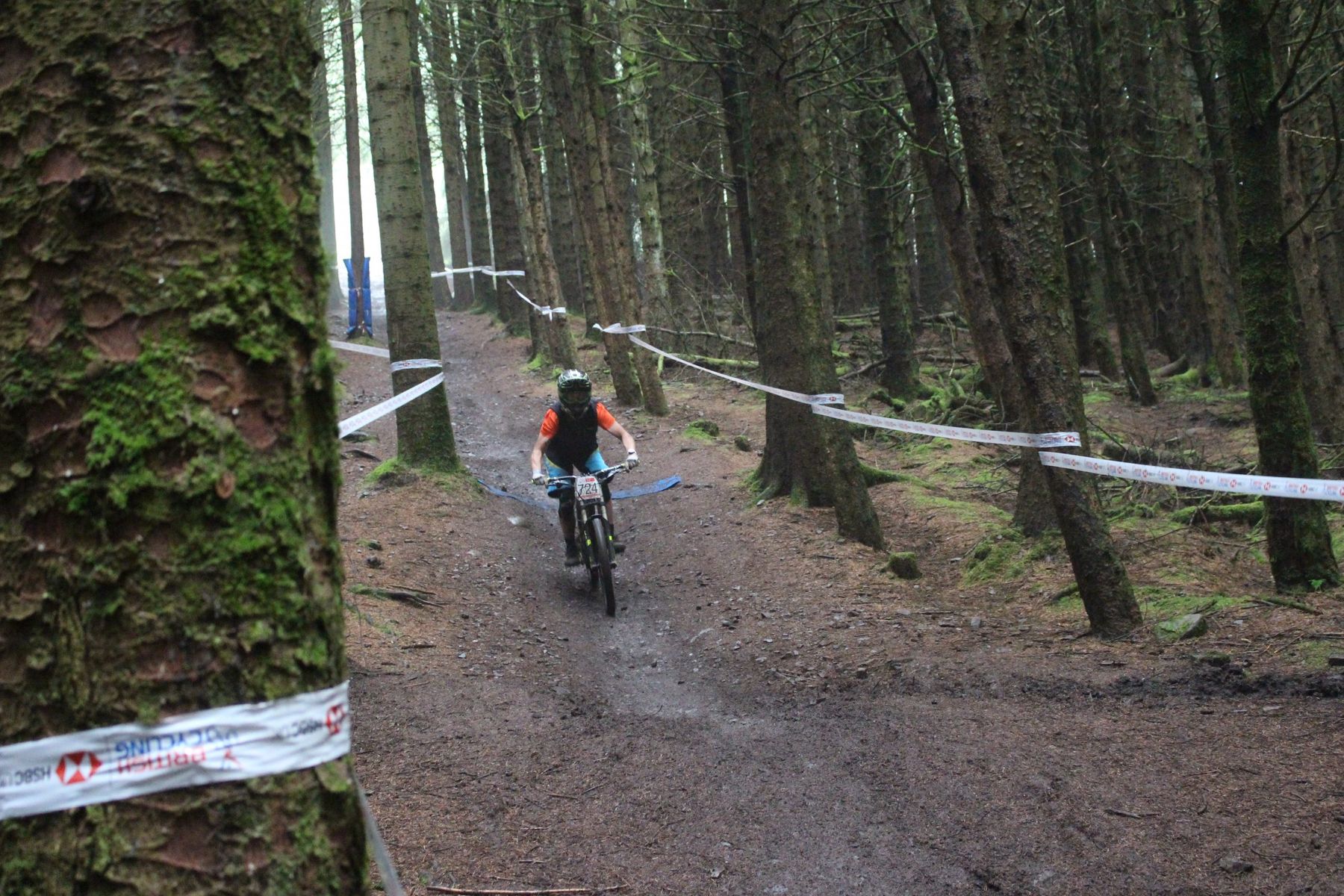 This section towards the end caused lots of trouble. A left hand turn off the usual track had you having to force yourself off the natural trail line and to one of three options on the left – a tight left into log drop then right turn, a wider right hand side line which left you with a tighter right turn, and a middle line that you had to get just right between to bar clipping trees. Lots of feet down, lots of pushing back up for another go, and plenty of ‘ooohs’ from onlookers.