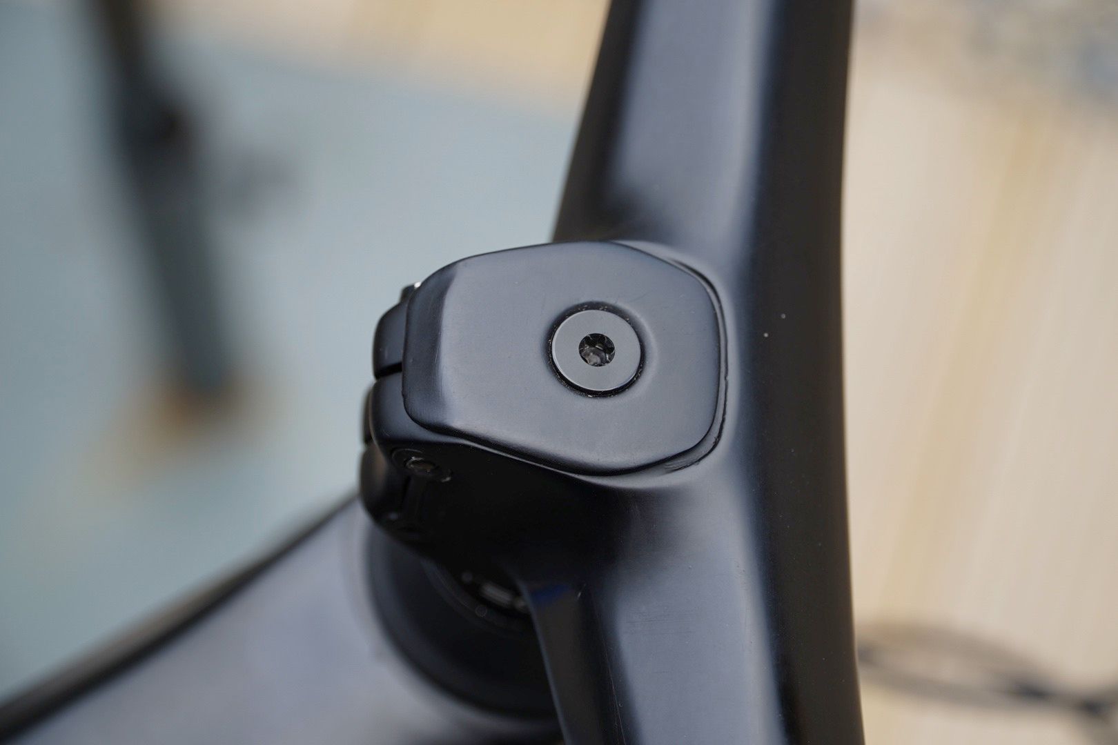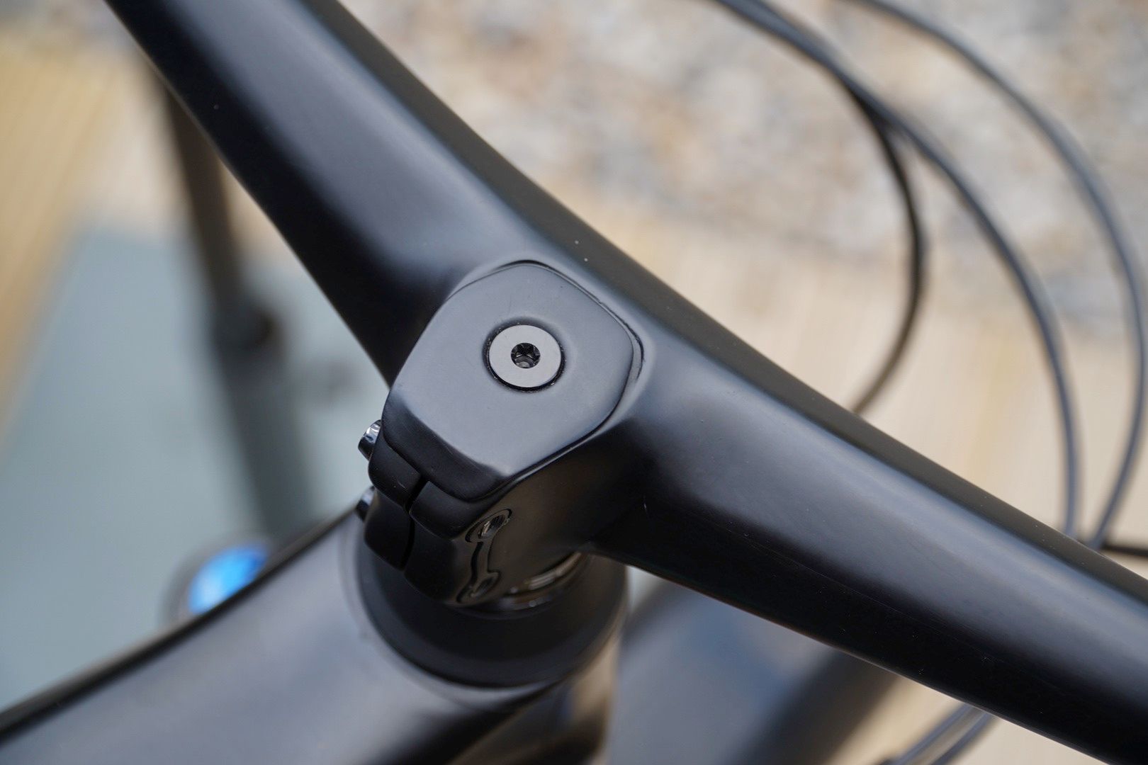 The stem is made to fasten to a standard 1 1/8th steerer tube and runs alloy inserts for the Torx bolts. Rather than being round, the clamp area has a neat but slightly wedge-like design to it, meaning it looks a little odd when mated to a standard round top cap, but Syncros has thought about this and supplies a very neat carbon top cap with the component.