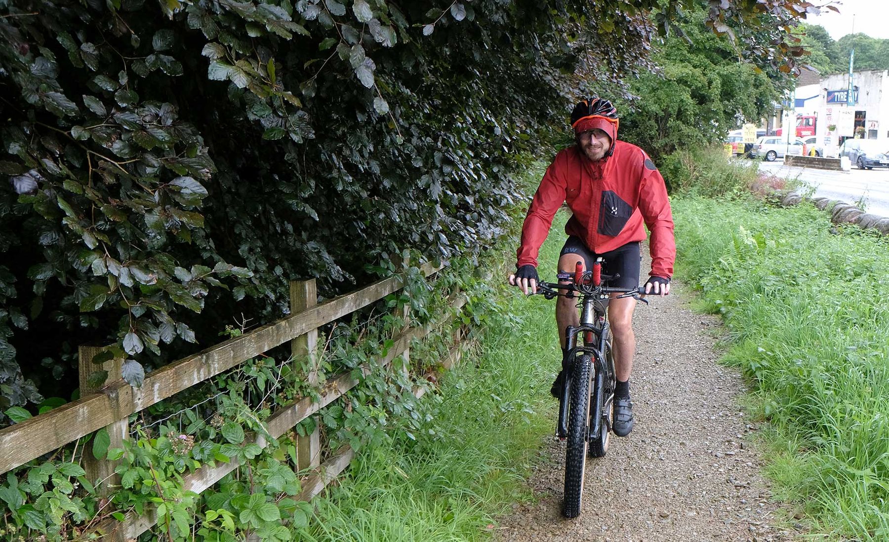 I just missed third place Niel Copeland, 24 hours later, who ducked into town and checked into a hotel for the Thursday night after filling himself with three courses of Wetherspoons’ finest. The following morning (we’re on Friday now) we did spot Rob Gardiner as the Great British Divide course crosses the main road here. Despite having his bike and all his gear stolen in Newport, he’s in an impressive fourth place on a borrowed bike. While he admitted that the previously bumpy 90km had taken its toll on his hands, he was keen to keep moving and head on to the smoother trails as they head up to the next checkpoint – which happens to be at the Dales Mountain Bike Centre, in the middle of the Ard Rock festival this weekend.