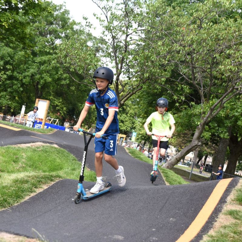 However, while the target teenage audience has been attracted to the tracks, they’ve also attracted many others. Parents bring their pre-schoolers, and both end up riding around the tracks. Primary school children on bikes and scooters also come to play. Allana notes that there are even wheelchair users from the local enhanced provision high school who are able to use the Zetland track. And then there are the keen local riders with all the gear, riders on holiday, and even pro-riders. The pump tracks have become a place where different generations and backgrounds meet, and the occasional sighting of a famous You-Tuber can give young people an important glimpse of the world outside their locality.