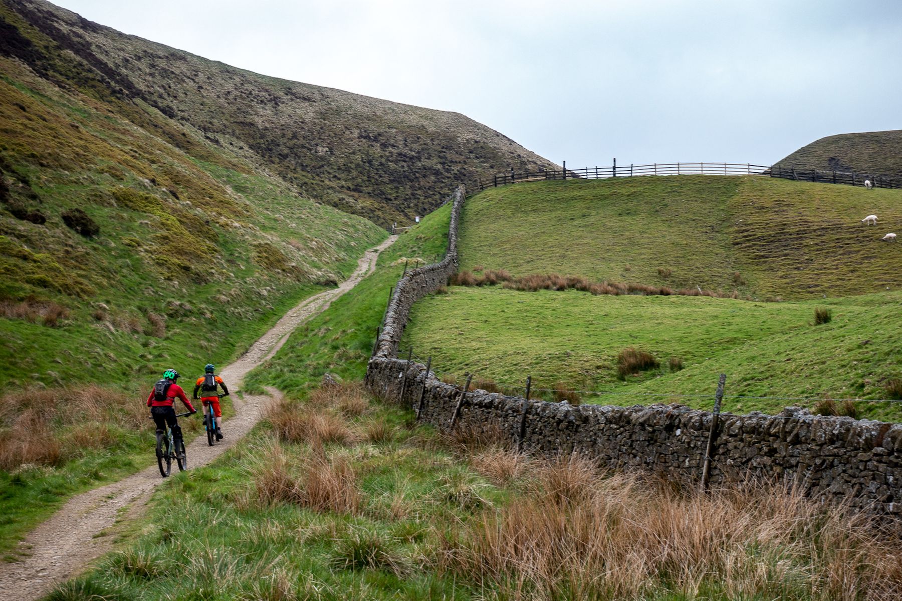 From the top, we were faced with a choice. The top loop will run in either direction – Jacob’s Ladder was as challenging a climb as it was a descent back in the day – but wiser and emphatically more up-to-date heads than mine strongly suggested (OK, OK, insisted) that we ride the thing clockwise. Descending the Ladder was the order of the day, therefore, which mean that the first thing to do was head along Rushup Edge.