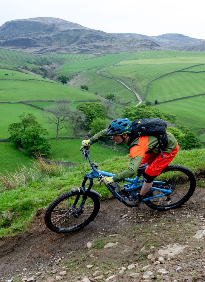 It starts off unimposingly enough, for sure. Rocky, yes, and slowly teasing with steepness. But then it diverts your attention with a retrospectively obvious straightforward line that snakes all over the place at the same time as you realise you’re clearly just going to hurtle over the edge of it and into the great beyond. This is the point where you’re desperately glad that you have a modern bike and, therefore, stand a (very, very) slim chance of styling it out.