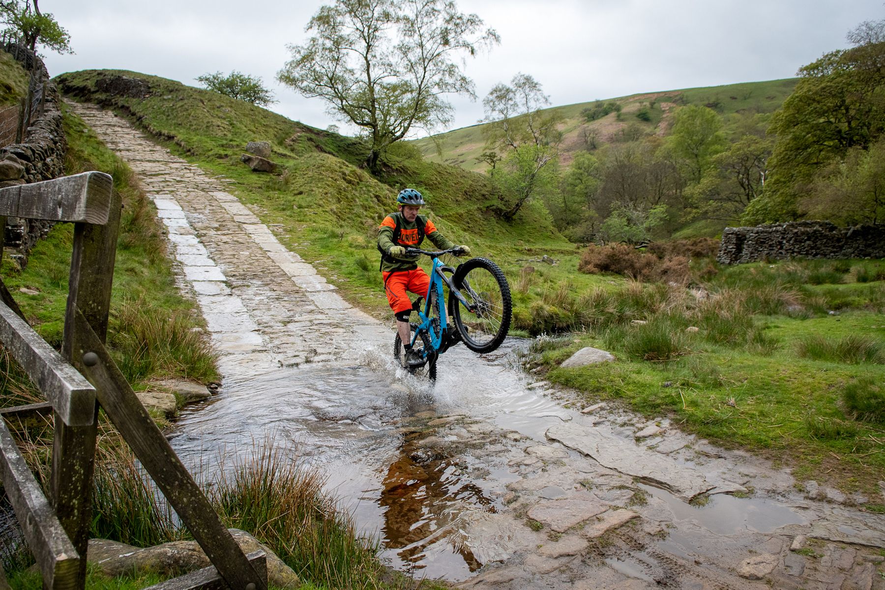 Ooop – a step-down. Another drop, there. And there. And then a long chute, which seemed simple compared to the stuff above it – until it wasn’t. A corner; more high-speed clattering. A quick dog-leg, and then a straight run to a ford at the bottom. Blimey. That was fun.
