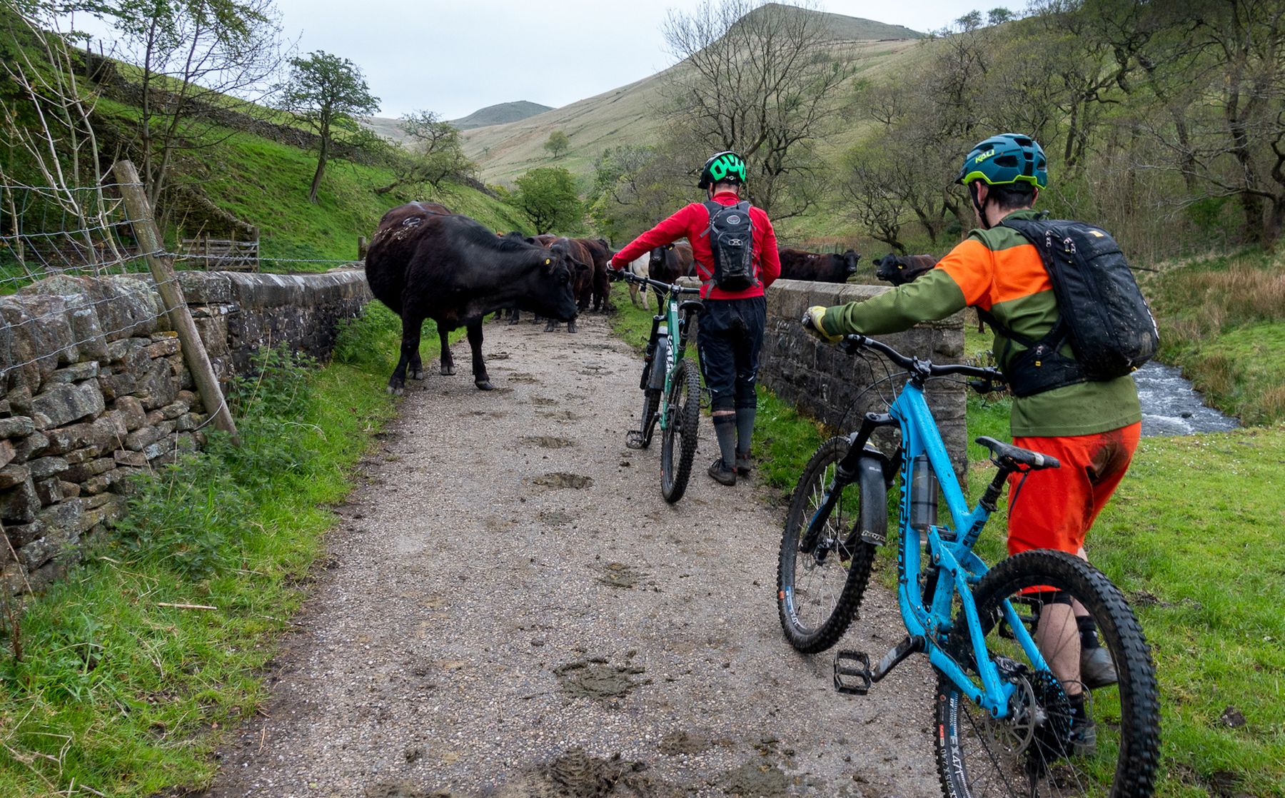 Take a beautiful, open, grassy, gently sloping and (when it’s dry), hugely fast valley. Use this to distil a supremely confident feeling of invincibility in mountain bikers, before suddenly dropping the trail through a very steep gorge. Fill the gorge with limestone boulders, and for extra spice, season liberally with walkers coming up, and then, for shits and giggles, shove a stream down the whole thing.