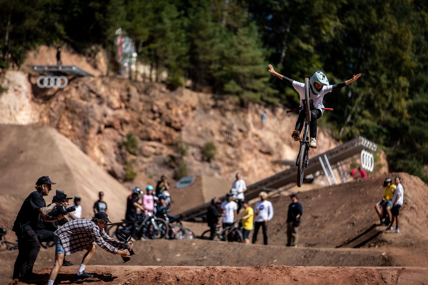 This non-competitive environment brings together an incomparable crew of mountain bikers to ride their bikes and push each other. Liken it to watching the greatest soccer teams playing for fun on the street or great musicians jamming spontaneously together in a studio. This is Audi Nines. When the competitive element is removed, it allows space for magic to happen, and that’s exactly what went down on every part of the course. From Freeride to Slopestyle, in only a few short days, these women not only raised the roof, they smashed through it, and they’re not showing any signs of slowing down.