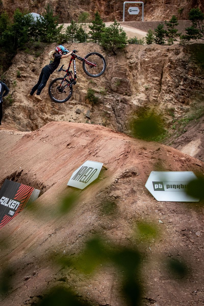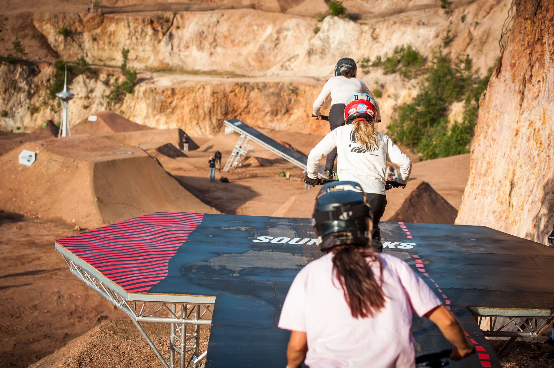 To begin with, nobody quite knew what to expect. Progression, yes, but how much and in what setting? Would women ride the whole quarry or just a little part of it? Did they have the skills and the confidence to approach these big and technical features? These were questions uttered from lips. Take a moment to reflect on the fact that most have never had the opportunity to approach a setup of this scale, or to session and progress alongside the best riders in the world. Then they dropped in, and any preconceptions were left in the dust.
