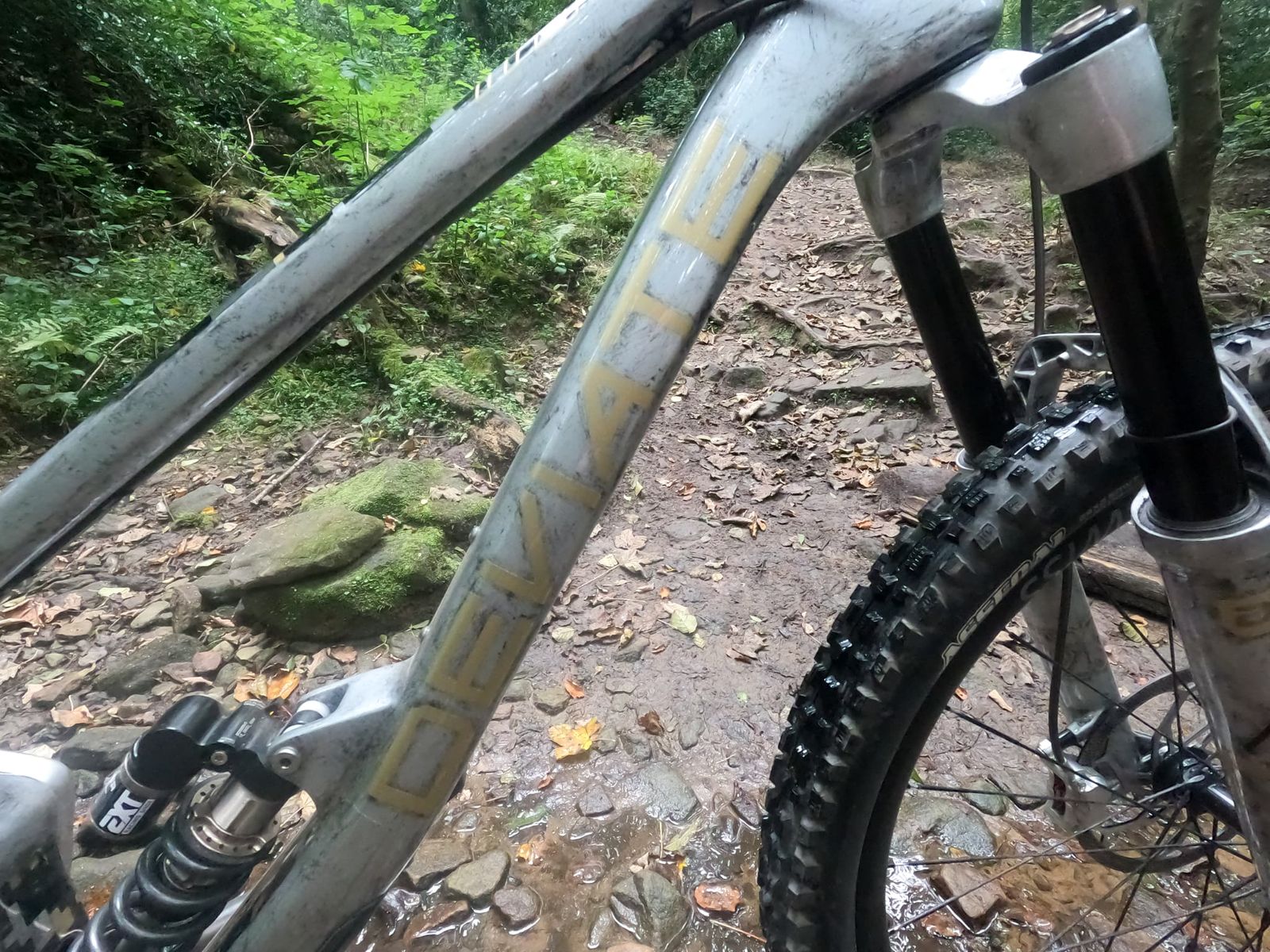 I have Deviate’s previous offering, the Guide, which blew me away with how well the high pivot worked, it really was the best descending thing I’ve ridden, short of a full on DH rig. My only slight niggle was whilst the pinion gearbox is perfectly fine for winch and plummet, or uplift riding, it’s not ideal for a trail bike IMO, so when Deviate announced they were going to do a bike with a regular drivetrain, I put my name down for a demo as soon as they could get to me. Sure enough it descended better than any 140mm bike I’d ridden, floating through rock gardens, but the feeling was of a much more taught bike, there was no slack or drag in the drivetrain, and the shifter was much more familiar, so, bike ordered, and the Guide is now very much built as a DH bike, with this filling in everything shy of that.