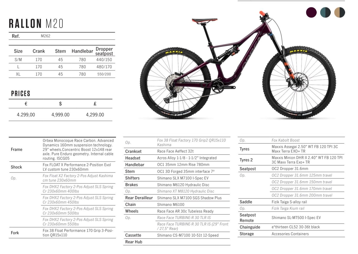 4 years ago the geometry on the Rallon might have been pretty good, but a reach of 450mm on a size large bike doesn’t cut it these days, so Orbea has increased it while steepening the seat angle and slackening the head angle. A size large Rallon now sports 30mm more reach for a total length of 480mm with a seat tube of just 435mm.