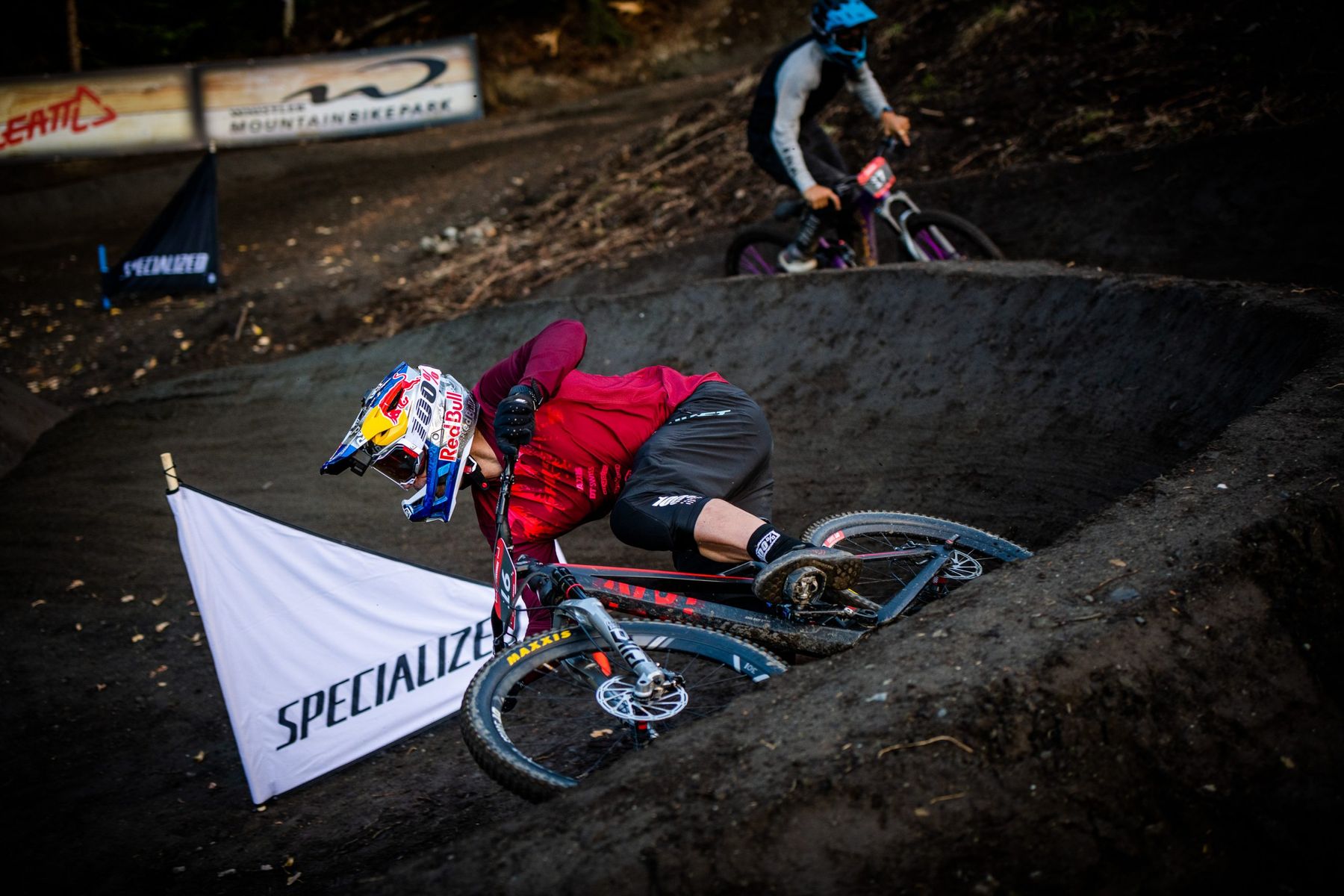 In total, Crankworx B.C. will include nine hours of live mountain bike racing and competition at three destinations within the province: Sun Peaks Resort, Golden/Kicking Horse Mountain Resort, and SilverStar Mountain Resort. Yesterday, athletes got their first taste of racing, with the practice for tomorrow’s DH, and practice and qualifications for the Dual Slalom. Qualifying results saw some familiar riders at the top, and some newer names charging to the front.
