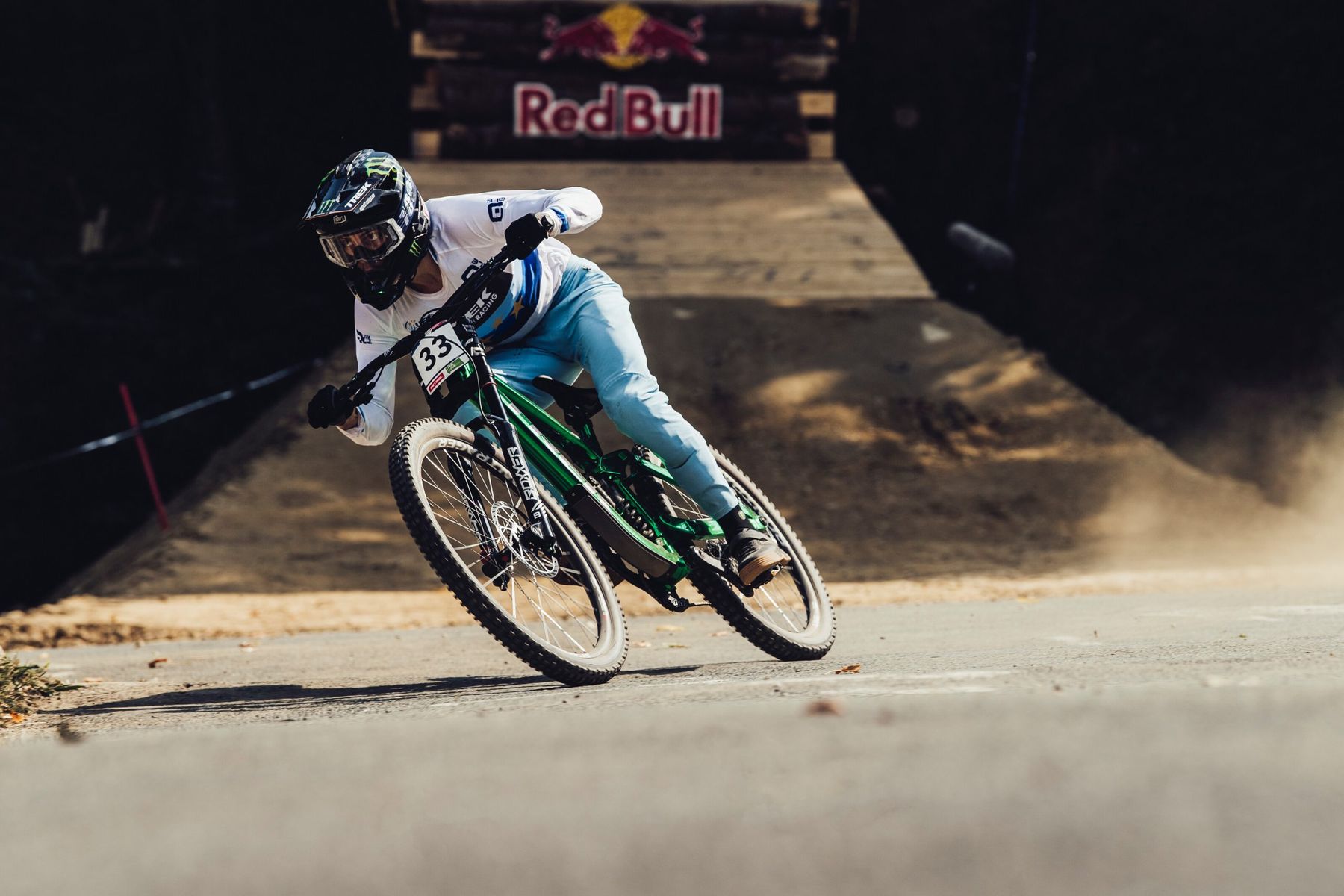 In the Women’s race no one was making any calculations. Myriam Nicole seeded fastest again, this time by ‘just’ five seconds. In race runs though Höll, who seeded fourth, looked like a completely different rider. That first World Cup win had clearly boosted her confidence, crossing the line exactly three seconds faster than Nicole’s qualifying time. Balanche came next but was five seconds back, then Cabirou who was just 0.3 off Höll’s time. The stage was set for the Queen to claim her throne, but Nicole started badly, slipping her chain as she left the gate. She recovered quickly though, fastest in sector two before crashing out turning at the end of a flat sprint section in the final sector. It cost her 10 seconds and inconceivably, the title. Winning the final two rounds was enough for Höll to take the series. Drama.