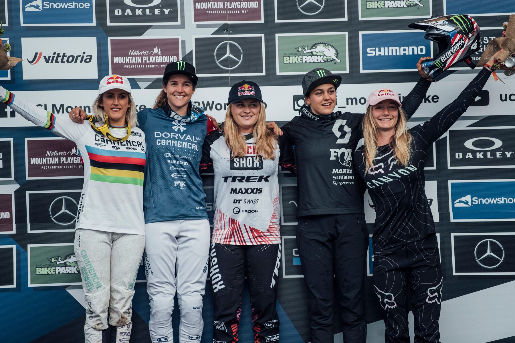 To hold World Championships mid-season always feels a bit odd. It’s a one-off race so riders go ‘all in’ but would you do that if you were a contender for the series? And if you were prepared to roll the dice, would you do it on The Black Snake, one of the longest and most challenging tracks on the circuit? Daprela decided against it and who could blame him? The Men’s race looked to be between the winner of the 2019 World Cup in Val Di Sole, Laurie Greenland and Loris Vergier but with six senior World Championship wins between them you can never count out Minnaar and Bruni. Minnaar looked like he meant business all week, Bruni, nursing a leg injury, never quite made it to the same level. Vergier was on fire all week and set the fastest time in ‘seeding’ (another weird World Champs anomaly, seeding doesn’t affect the order riders race down the hill; this is set by their World Ranking). On race day Benoit Coulanges was the first man to go under 3:30 but six riders remained at the top. Brosnan followed and also went under 3:30 but a smidgen slower. Matt Walker was a couple of seconds back, but Minnaar went a smidgen faster. That left the French triumvirate of Vergier, Bruni and Daprela. Usually at World’s someone delivers ‘the run’; usually at Val Di Sole someone delivers ‘the run’ and we’ve seen some huge winning margins here in the past, but none of them could manage it and Minnaar at 39 years old won his fourth Elite World Championship. Amazing!