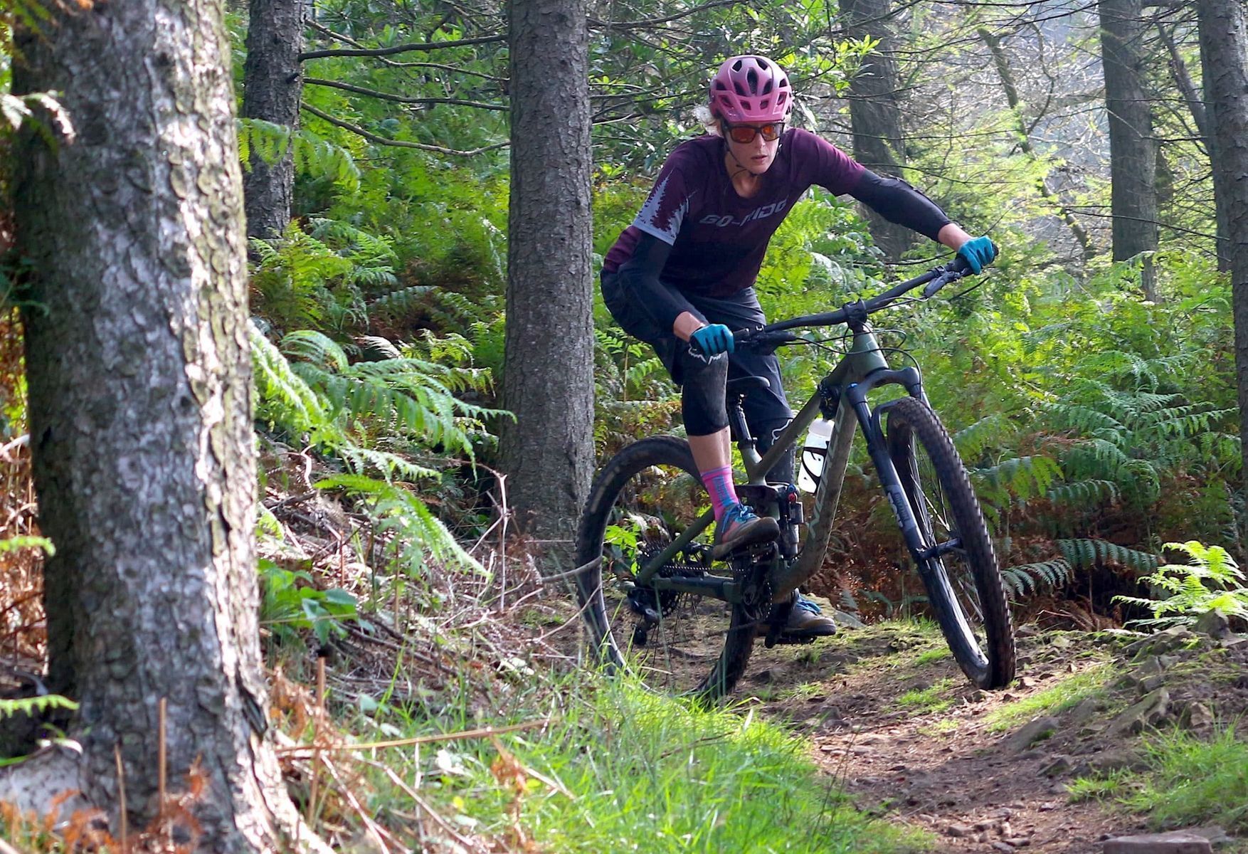 Having crammed as many of the sweet and juicy little morsels into my mouth as my loss of dignity will allow, I feel revived. Maybe it’s this or maybe it’s the descent that follows, but suddenly all the climbing seems to pay off. The Rock and Jetlag sections of trail lead downwards into a series of steep rocky chutes and drops. They’re all rollable if you get the right line, but if you’re powered by bilberries you can launch yourself off them too. It’s a fast descent that I would happily ride repeatedly if it were preceded by an uplift – or assisted by an eBike. It’s good enough to be worth seeking out on its own, if you haven’t got the time or inclination for a big day out on the whole Blade route. Or, while other centres are busily devising ‘ebike specific’ trails, Blade seems like the perfect route for an eMTB. Your mountain bike ancestors, with their poor suspension, put plenty of emphasis on making the up as interesting as possible.