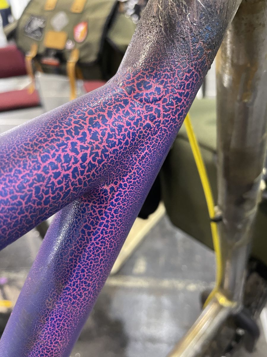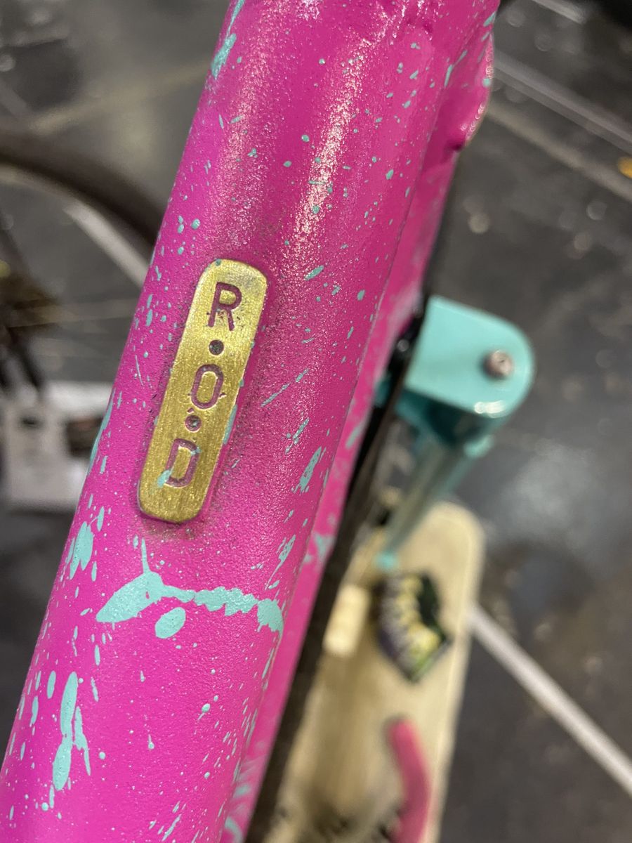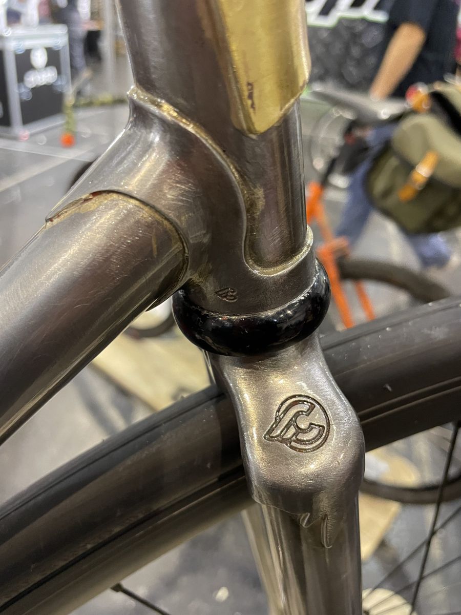 A BMX with Manitou fork, stainless/rusted steel mix, and an extendable seat post so you can cover some decent ground to get to your local ride spot. This makes my list because it’s fun and I like the renegade vibe to this. If I could jump, I’d want to turn up to my local spot on this. Plus, when I asked what he called the pair of bikes next to it on the stand he said ‘my kids’ bikes’. Lucky kids! I’d bet few birthday cakes can be made with as much love and passion as these bikes.