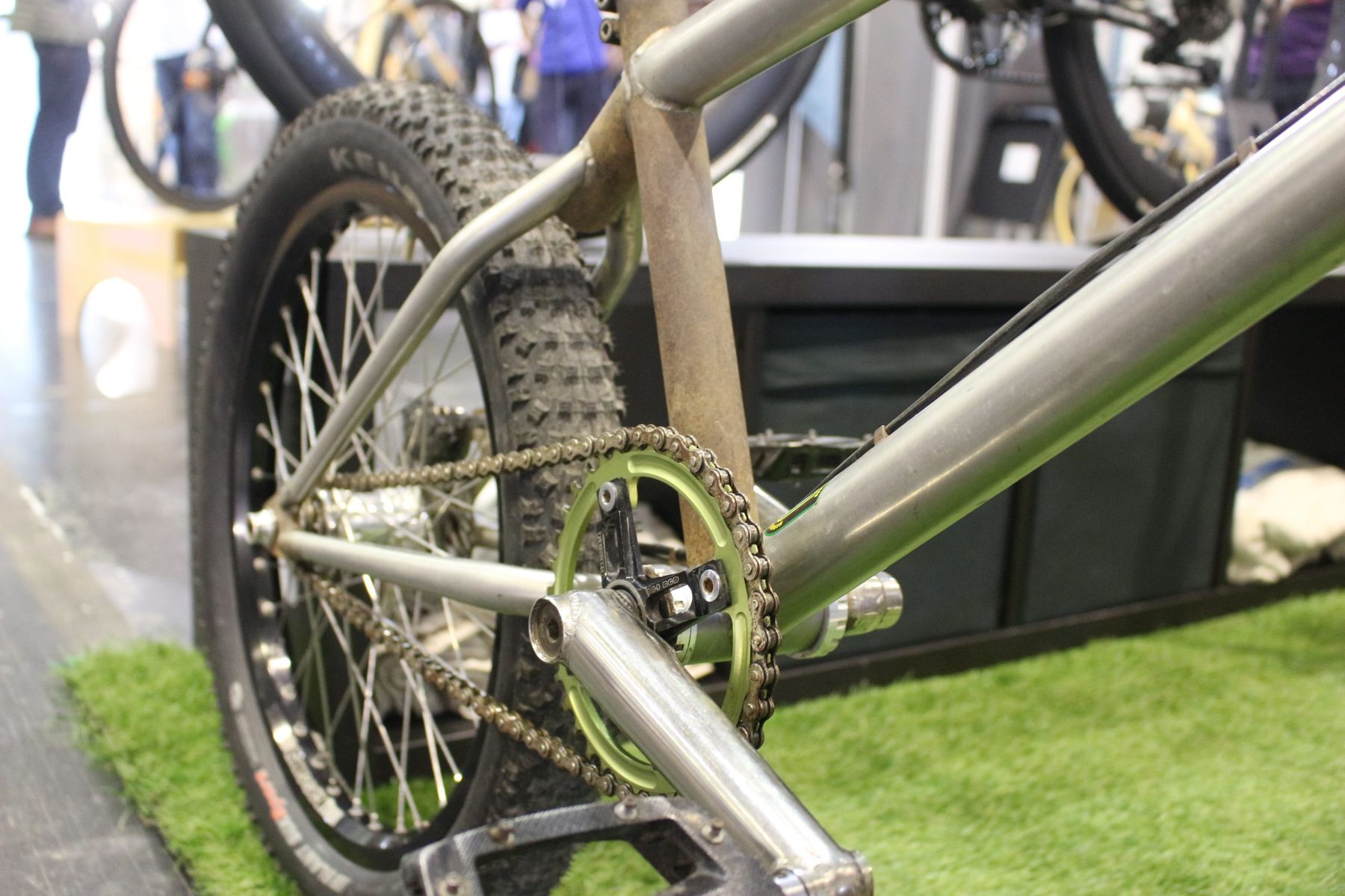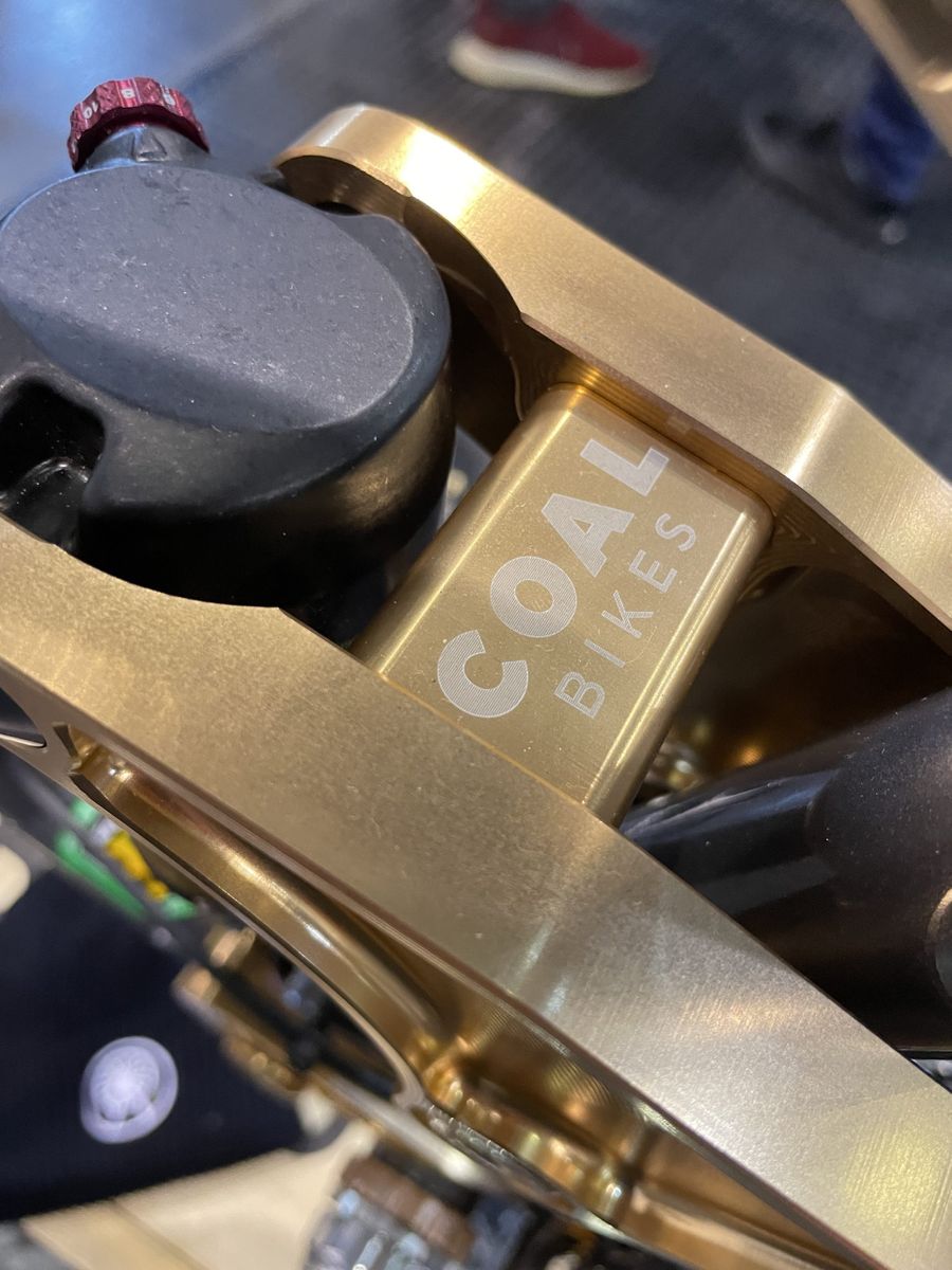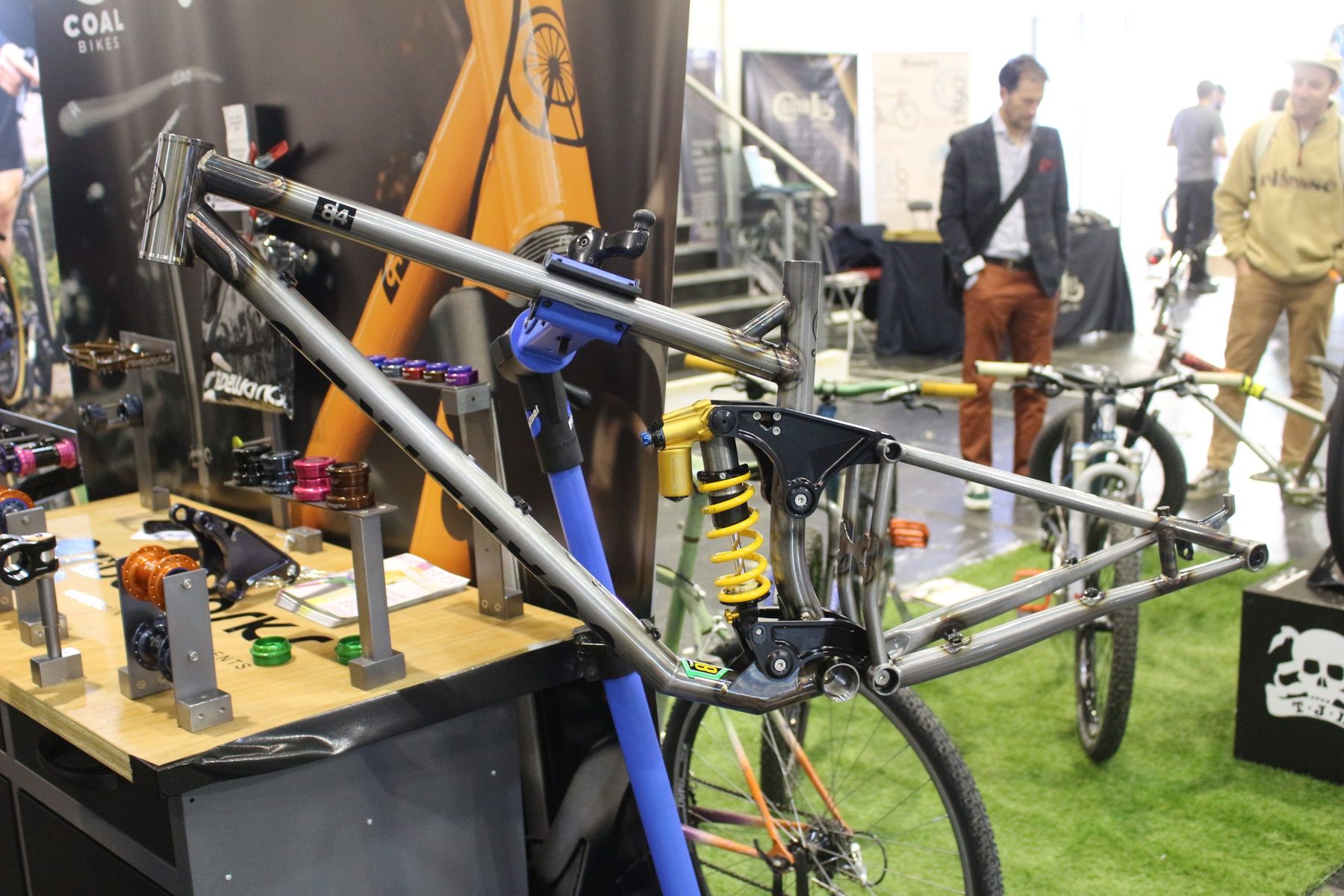 These bikes are built by Gavin, who was the framebuilder at Stanton when I visited there and he showed me how to weld. He’s now part of Coal Bikes, and they’re just finalising their design. For me, this was the best dressed mountain bike of the show. Looking more than skin deep, there’s a really interesting frame underneath that bears closer inspection.