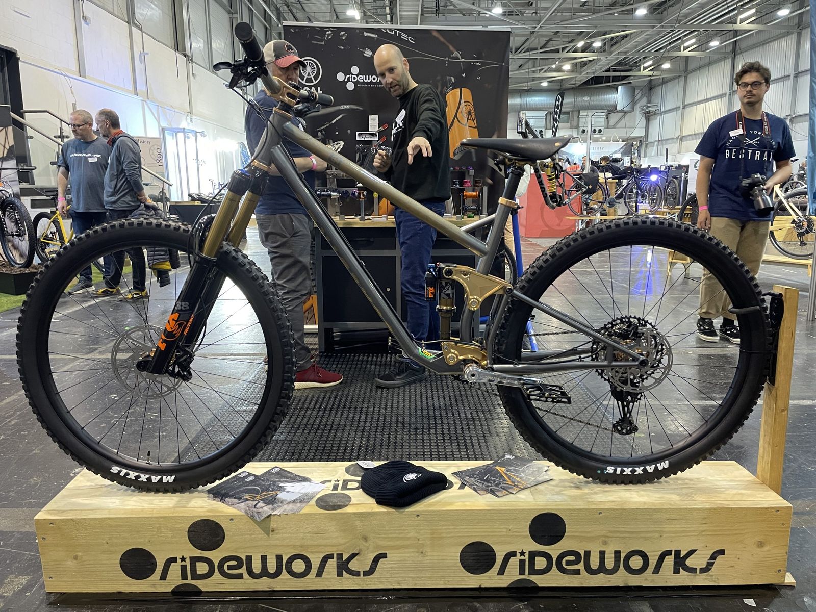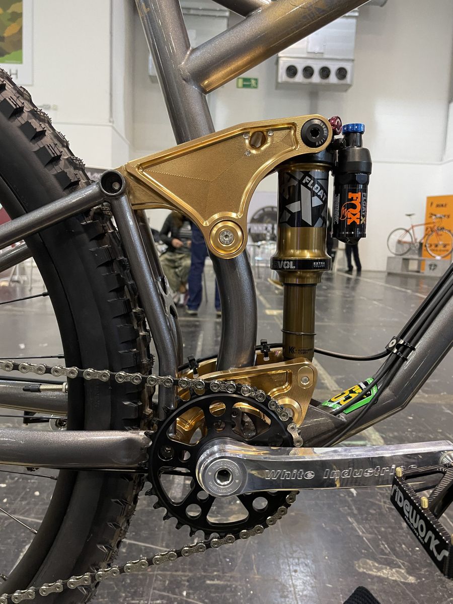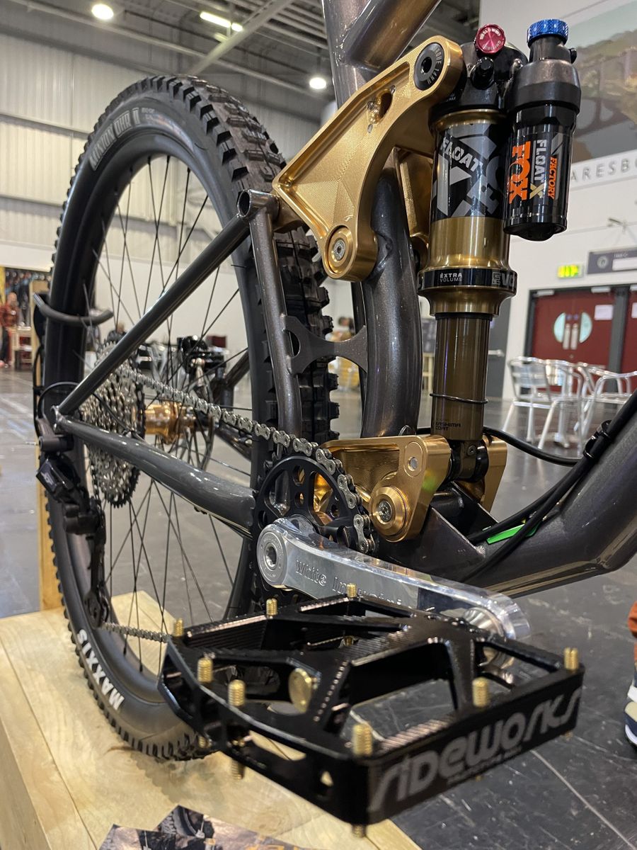These bikes are built by Gavin, who was the framebuilder at Stanton when I visited there and he showed me how to weld. He’s now part of Coal Bikes, and they’re just finalising their design. For me, this was the best dressed mountain bike of the show. Looking more than skin deep, there’s a really interesting frame underneath that bears closer inspection.