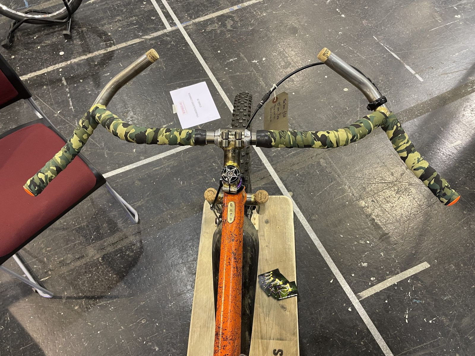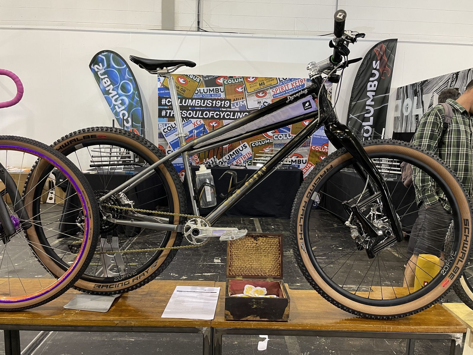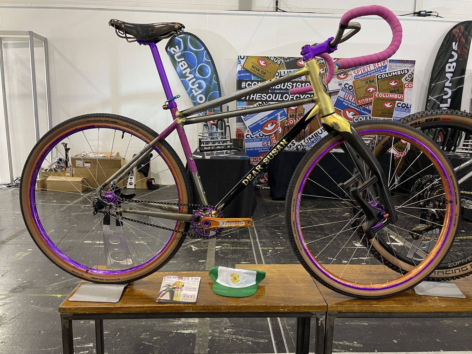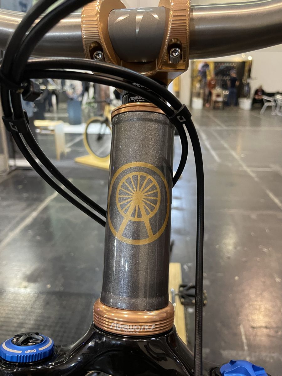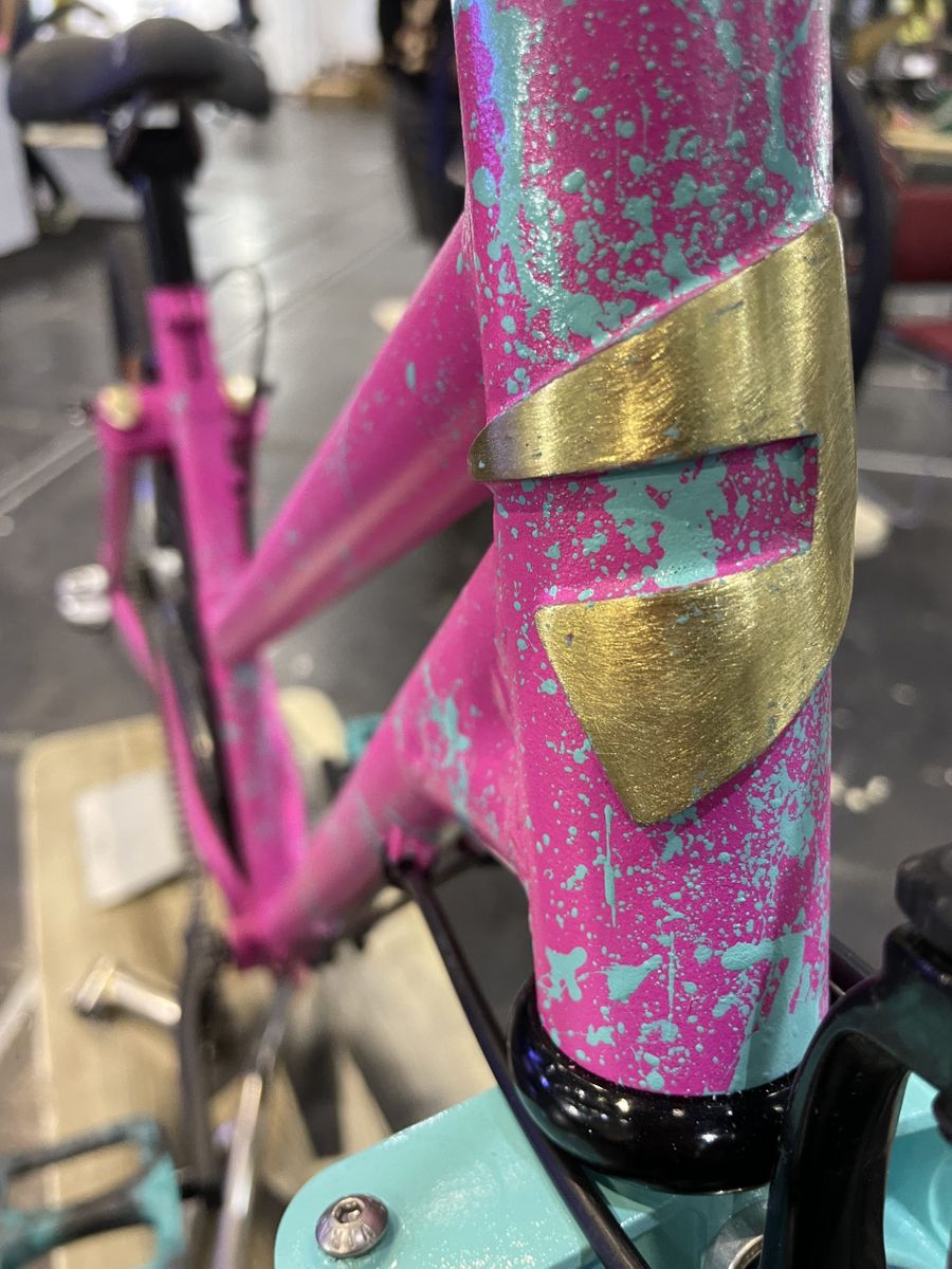 It was great to meet Petor, the builder behind the Bicycles Pubes bike at NAHBS, and also behind Grayson Perry’s Princess Freedom bike that I saw when I interviewed Grayson Perry a few years back. His stand had two bikes on it reflecting the fact that Hope and Paul Components are both the same age. One has an American theme, built with Paul Components parts for Dynaplug’s stand at the 2020 Sea Otter that never happened. The other is built with Hope parts, painted by a friend who’d never painted a bike before, and the last bike Petor says he’ll make as Dear Susan. In future he’ll be running Bespoked with new business partner Josh. They have some plans that sound great and made my whole flying trip over there have a nice warm glow of hope. Watch this space.