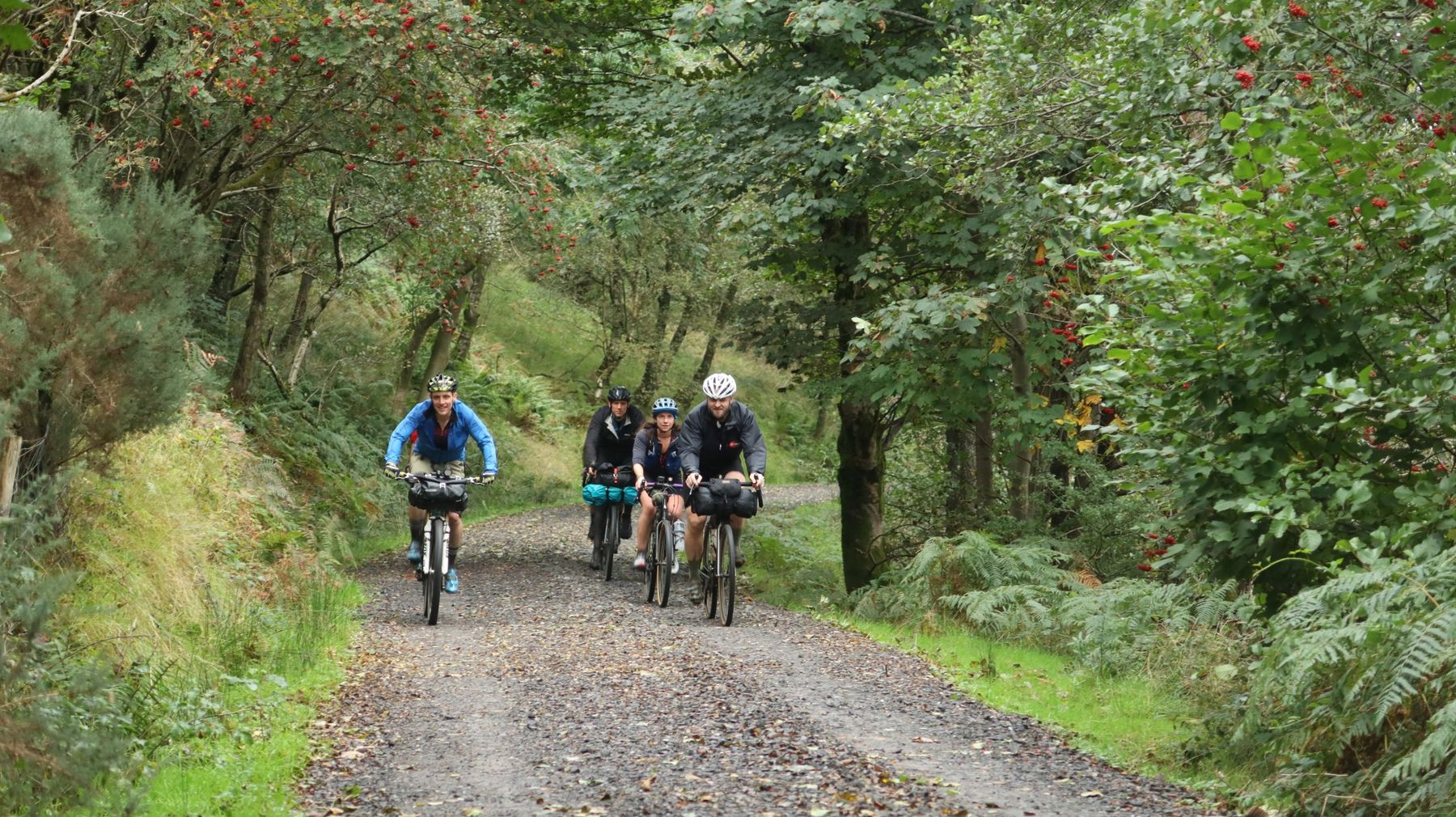 We’d already decided that the six of us would ride together on day 2 and we’d all packed up and eaten breakfast relatively early so Charlie marked the register again and off we went. It was a lovely ride along the undulating lochside road with a tailwind but soon we were climbing off-road and before long, we were once again marching up an unrideable slope. The views were, however, stunning and as the early morning mist lifted the views across Loch Goil and beyond made every pedal stroke and breathless step upwards worth the effort. I couldn’t help but think I’d possibly eaten a bit too much breakfast though….