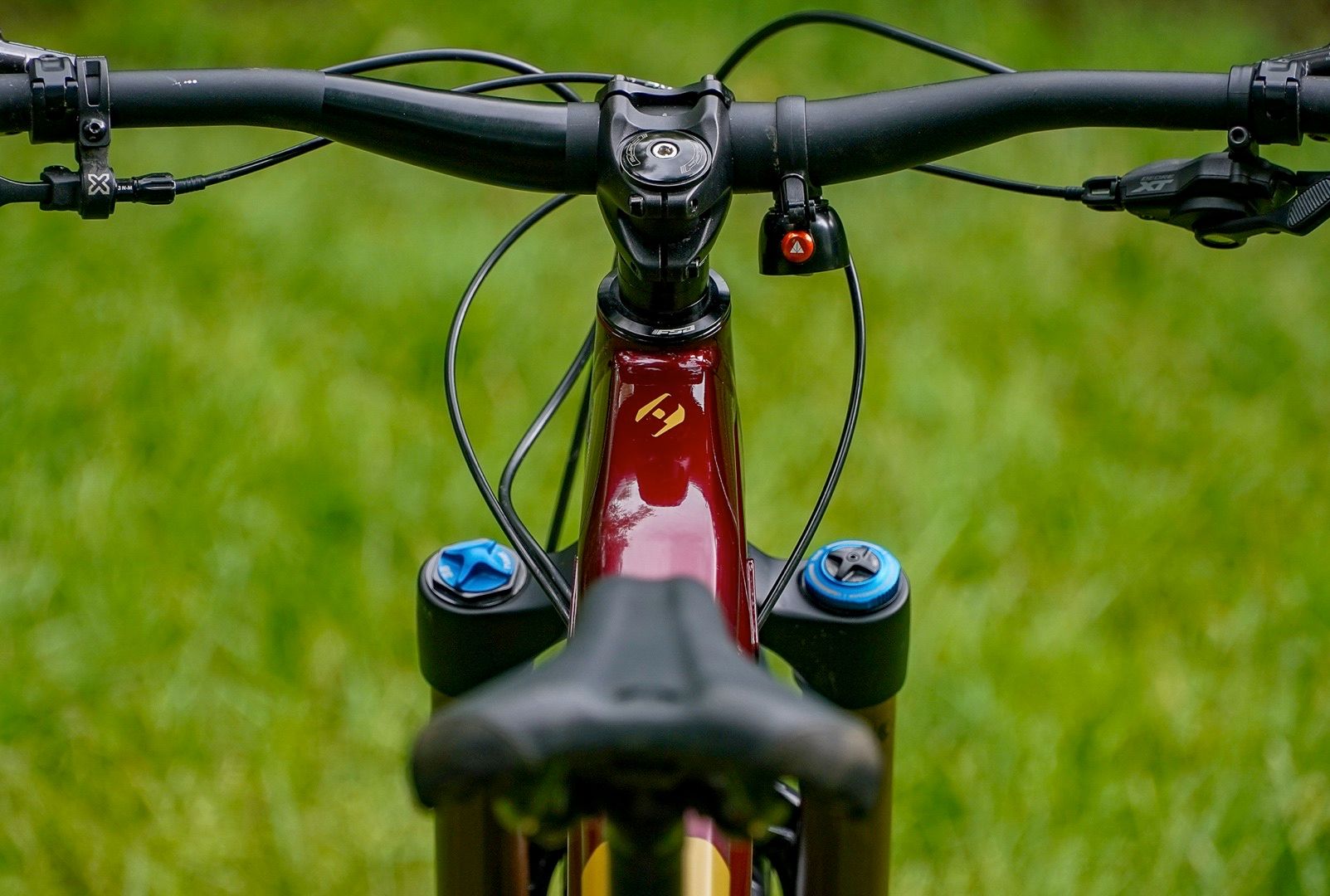 Up front, we have a Fox 38 Factory Grip 2 fork with silky Kashima stanchions producing 160mm travel. The rear shock is a Fox Float X2 with 2 position compression lever, and the dropper is an X-Fusion manic post with 170mm drop (150mm on S-M bikes).