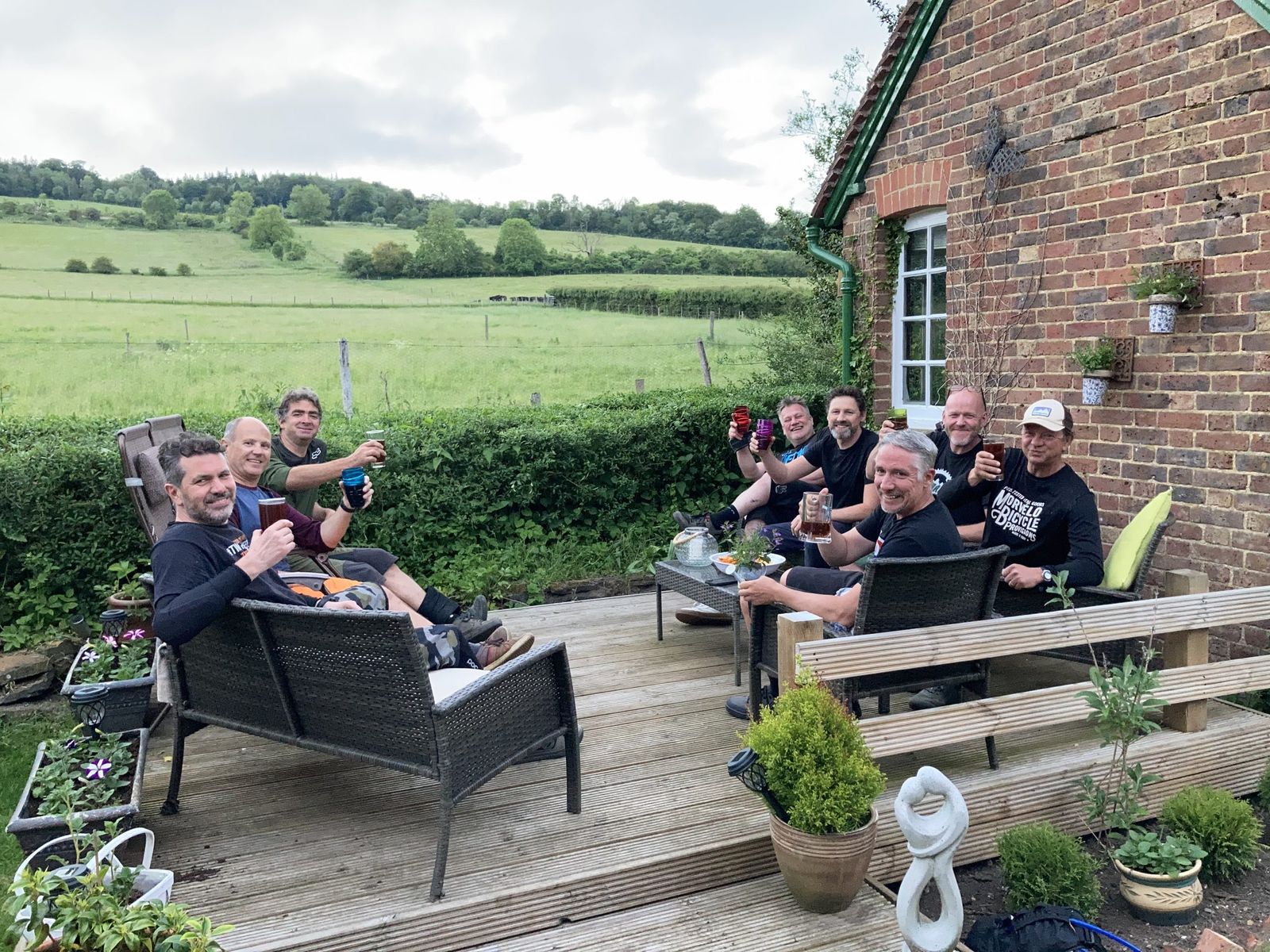 Being who he is though, this was mostly kept fairly tightly under his hat for some time, but as the months went by and having some really scary moments involving organ failure, ICU and life changing surgery, the situation improved and he opened up to us and now we can talk about all the shit (literally) that went down during this difficult time, and we can now help him out in the future. During this period it was decided that TFIT would fund and build a deck area at his house as a place of recuperation and enjoyment for him and his family. The day we completed it he barely had the strength to step out of the back door. Fast forward to June 2021 and we were enjoying a very special ‘Dave’s Deck’ party, after an earlier ride around the Peaslake hills. Complete with his famous ‘salad free’ braai [have we reached peak STW? I had to google that – Ed] with the most delicious meats that South Africa has to offer, a table tennis tournament and even special badges were handed out for us to keep. I can safely say that his energy, fun and fitness levels have come rushing back, and shows the true character of this gentleman.