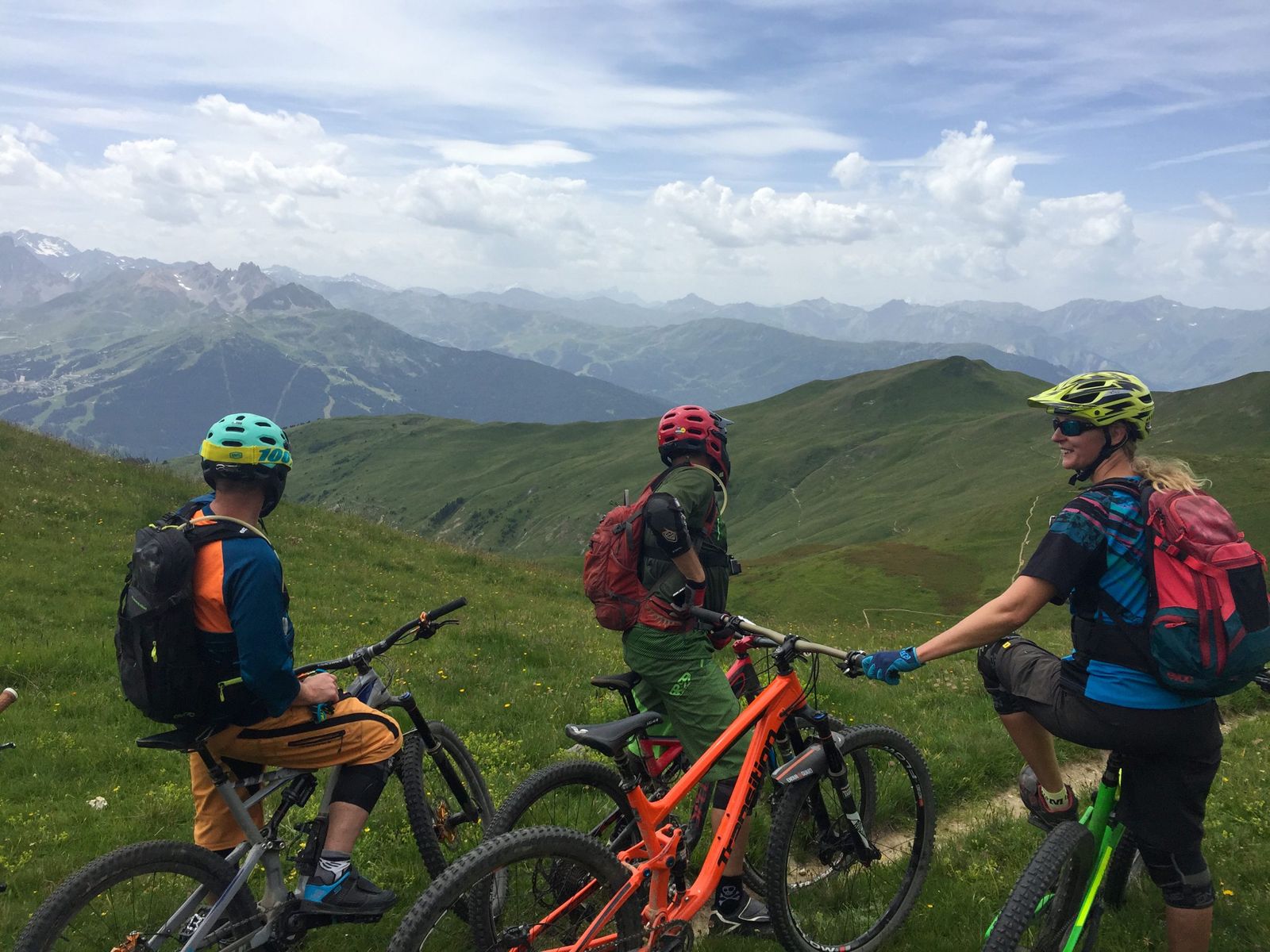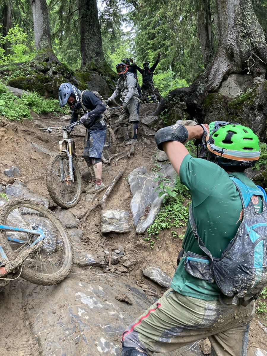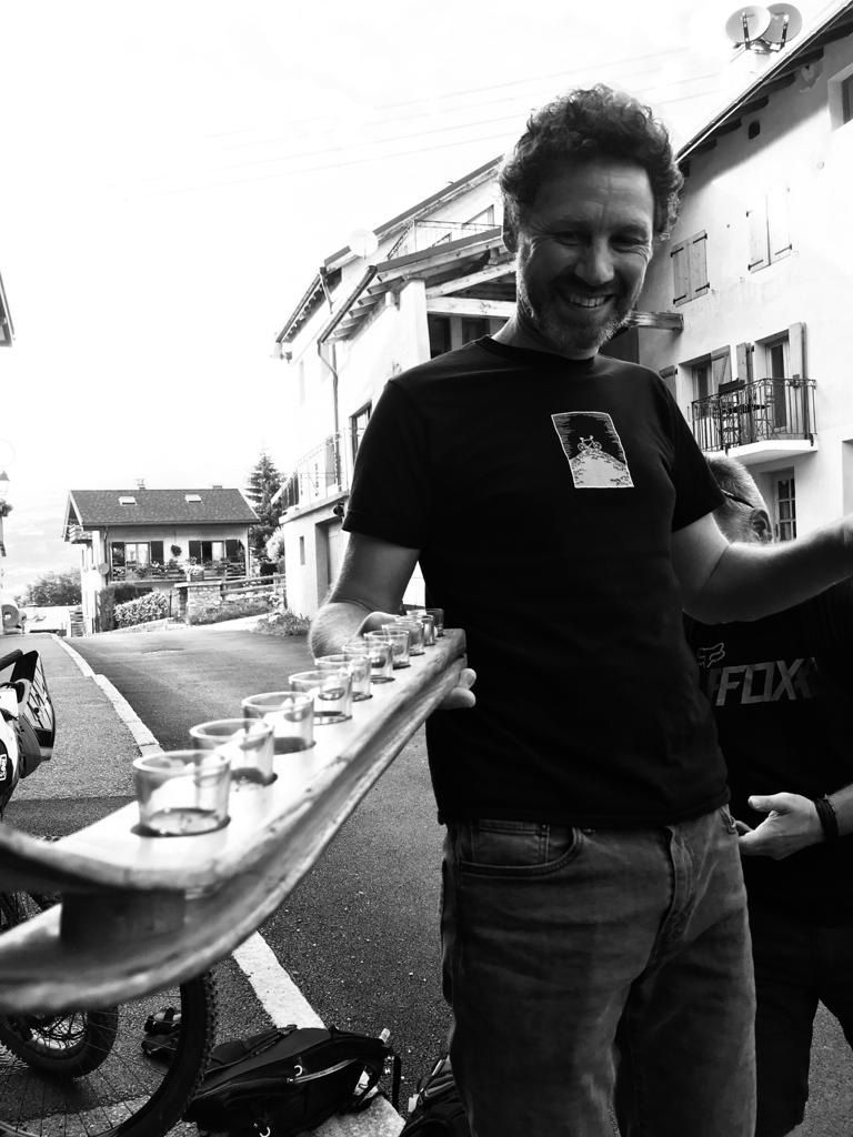 This isn’t going to be a long spiel about all the runs we did and how we shredded every turn, shralped every berm and styled all the jumps (as that would be a lie). We kept having a sly look at each other and just knew how fortunate we were to be here and in each others’ company, we really were as Monty Python said “Lucky, lucky bastards”. The lifts were incredibly quiet, most of the bars even more so, yes there was quite a bit of moisture about on some days, and keeping rubber side down at times was tricky. We mixed in bars with the likes of Laurie Greenland, Loic Bruni and Andreu Lacondeguy, spied Tahnee Seagrave having breakfast one morning as we cycled up to the lift and learned a few home truths about each other after several glasses of red wine when playing a card game called ‘Bad People’, NOTE: Do not play this game with children or family! We watched the incredible endurance and pace of the UCI XC riders on the Sunday afternoon in what were some truly atrocious conditions, and basically used just about every inch of the available trails that the region has to offer. Some of it we styled and others we slithered and slid down. During all this there was one guy in particular who just couldn’t stop grinning, or babbling about how awesome a particular descent had been. Yep, it was our very much restored friend and this was such a tonic for all of us. For the whole week we rode, drank and ate. We watched in awe as England qualified for the Euro Finals, much to the chagrin of some locals. It was perfect, the Tarpless Tour had truly delivered.