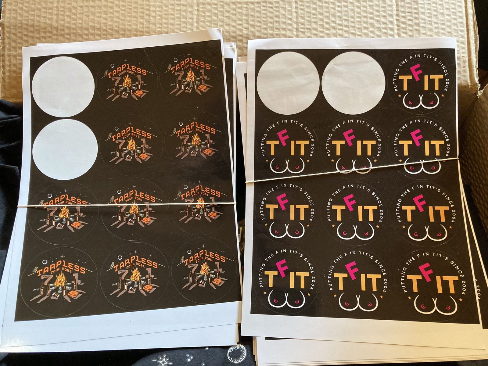 Often our trips are loosely named in honour of a certain person or persons, typically to celebrate a significant birthday event. Since being welcomed to TFIT around 2011 I’ve somehow been tasked with the production of the essential must have tour T-Shirt designs. Now I shouldn’t let them know, but I secretly love this chore, given I’m a graphic designer by trade it probably seems like a busman’s holiday, but thinking about the victim client or clients in question I can run riot with stupid or silly ideas that can grace the blank canvas space of the attire. Some fairly questionable and probably not politically correct elements have come and gone over the years, but all of them reflect on an event or some personality trait that matches the particular individual(s). With your initials printed on the sleeve you can’t even misplace your unique T-Shirt when it’s dumped in the communal washing machine on holiday after a particularly foul and muddy day on the trails. We’ve even had personalised sets of top trump cards, foam machines, one-off specials amongst the merchandise on offer, and as an added bonus we even had stickers this year, many of which are now in some very odd locations, abroad and at home.